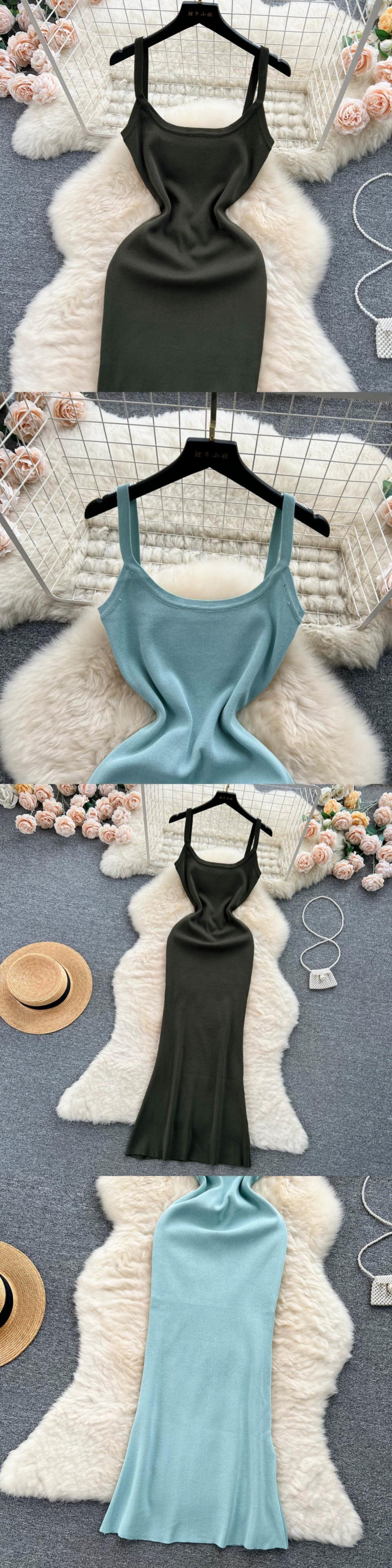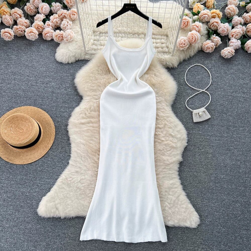 軽い豪華でハイエンドのスリングニットドレスの女性の夏のミニマリストソリッドカラースリムフィットニッチユニークなエレガントなドレス サマー 夏物 lyxaj1734683573