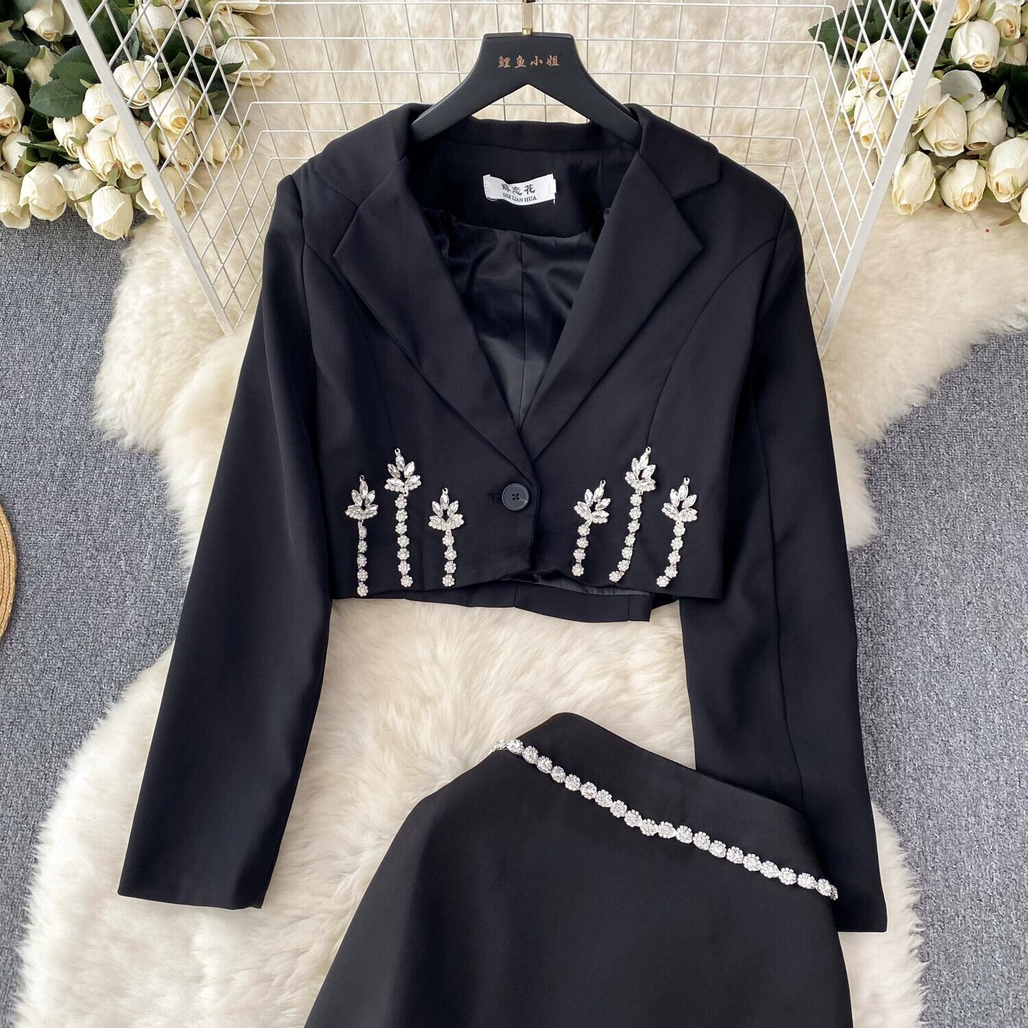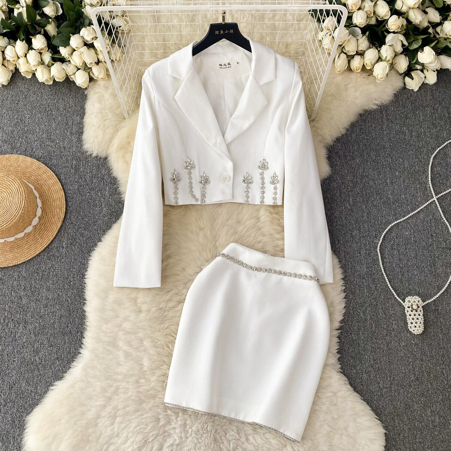 ミス娘の淑やかなファッションスーツの女性、ハイエンドの頑丈なダイヤモンドスーツジャケット、ハイウエストとヒップスカート ハイウェスト lyxaj73869227855