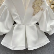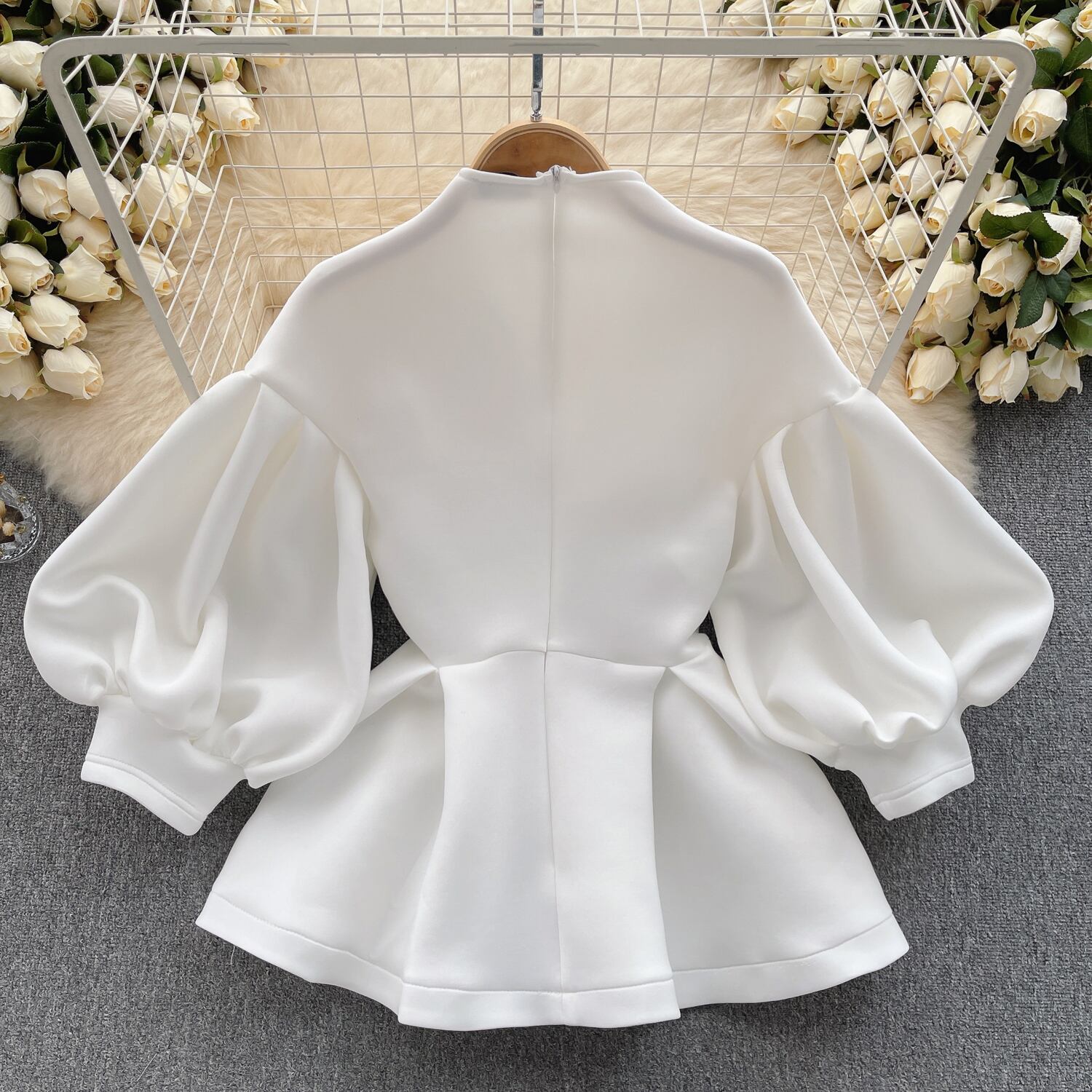 リッチスタイルの高級ロイヤルシスターシャツレディース夏Vネック立体花パフスリーブデザイン気質トップ サマー 夏物 フラワーデザイン lyxaj67753262550