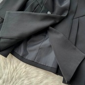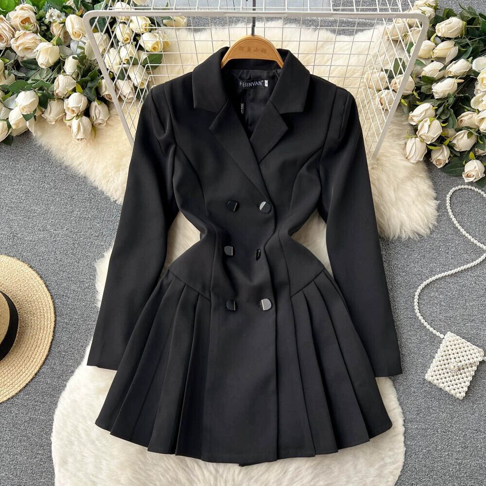 春と秋のスリムスリムプリーツスーツスカートレディース長袖ミッドレングス新しい黒ウエストドレスラペルショートスカート ロング ブラック スプリング 春物 オータム 秋物 lyxaj49213046530