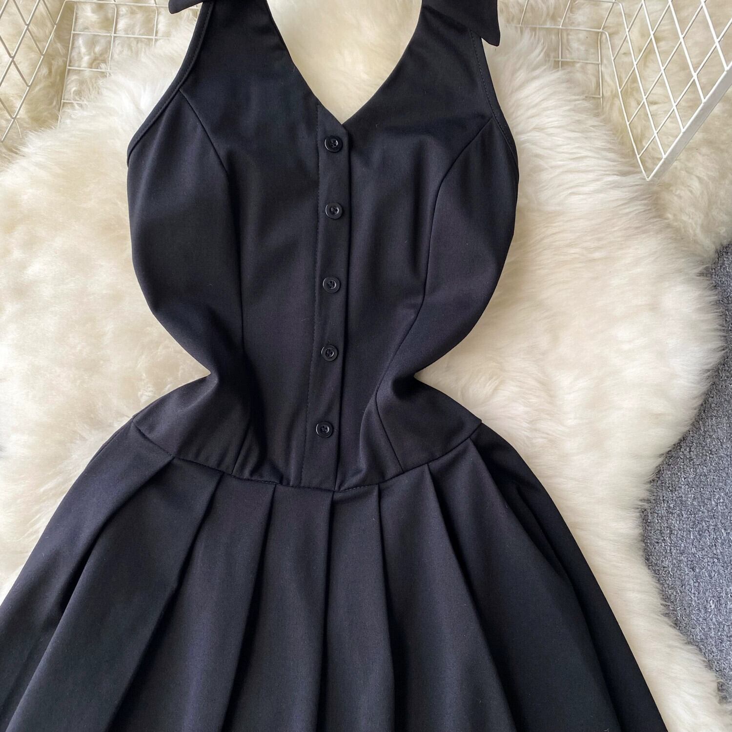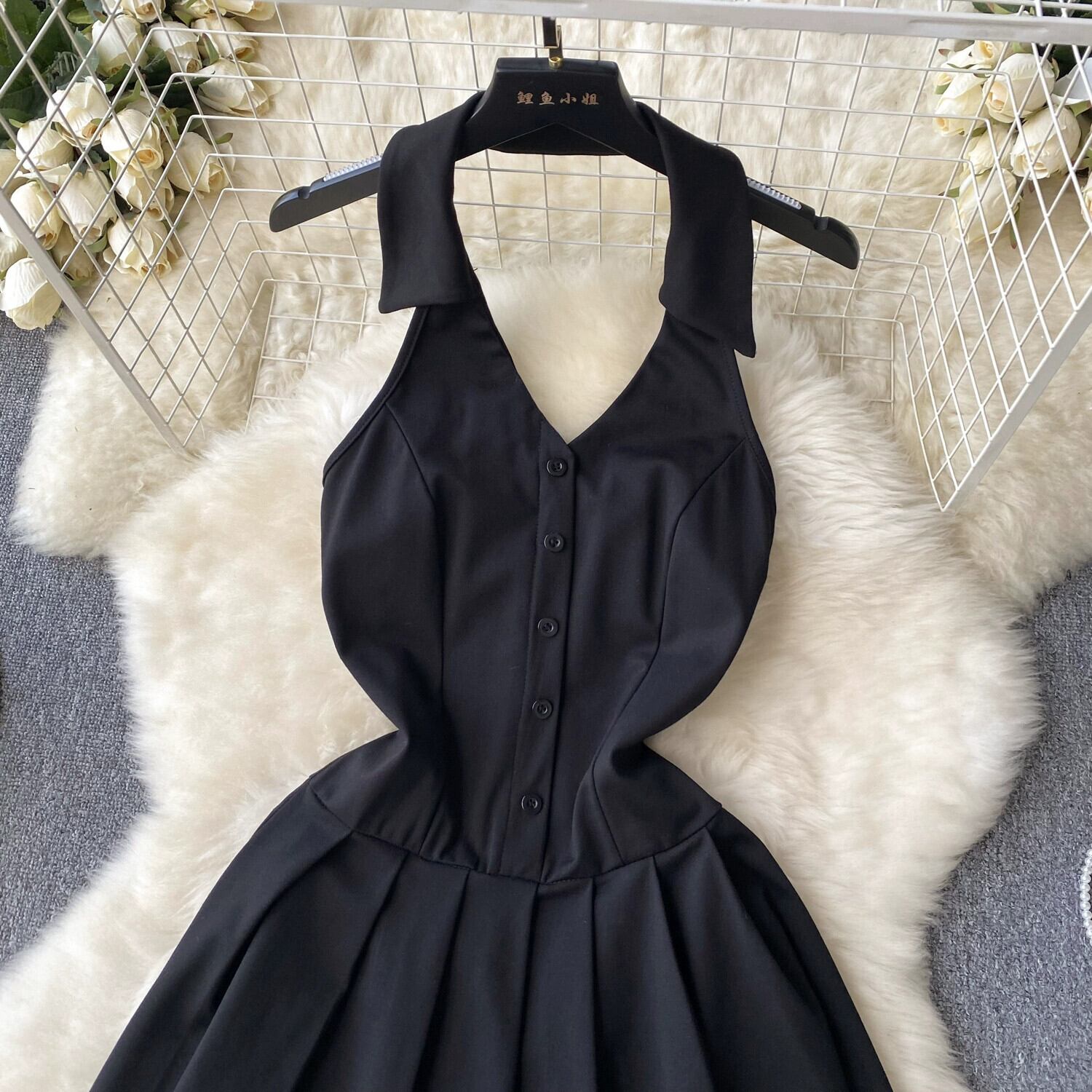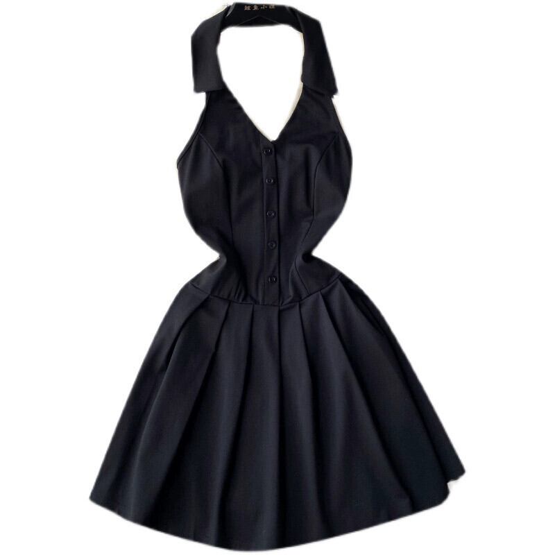 フレンチデザインニッチラペルホルターネックバックレスノースリーブAラインスカート女性2023夏のシングルブレストサスペンダードレス サマー 夏物 lyxaj60402501575