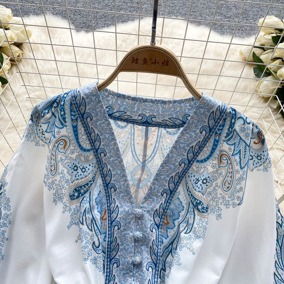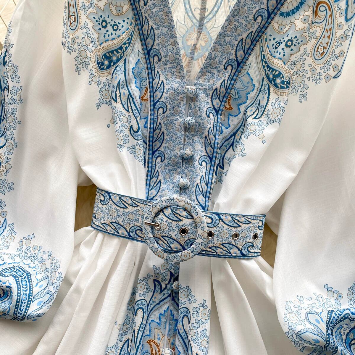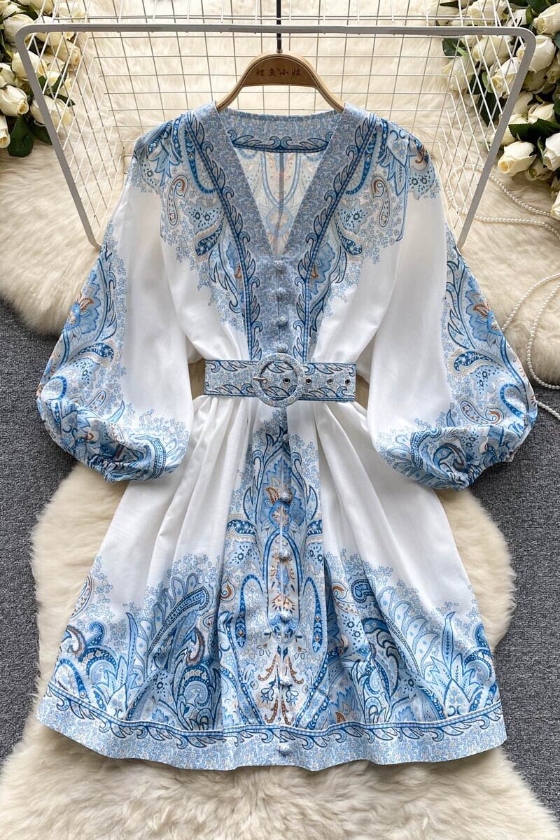 フランス宮殿スタイルドレス 2023 新しい女性のデザインニッチプリントパフスリーブスリムショートドレス レース lyxaj98351117933