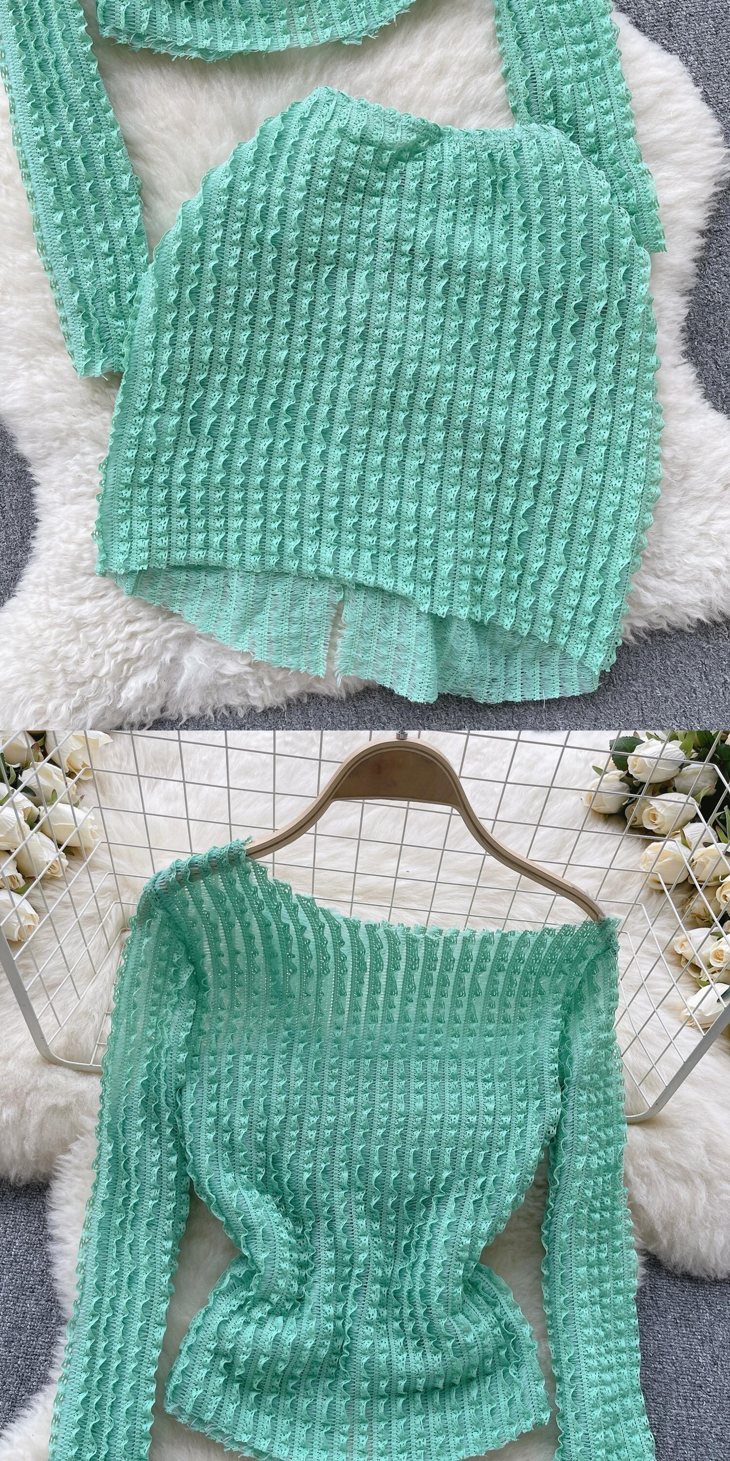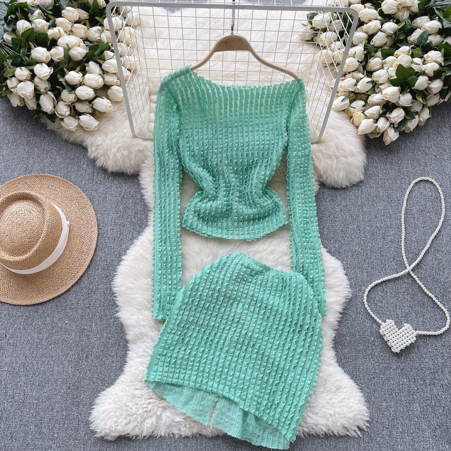 ヨーロッパとアメリカンスタイルのファッション高級スーツの女性の春と夏のオフショルダー長袖Tシャツ+ハイウエストの純粋な欲望のヒップハグショートスカート ロング スプリング 春物 サマー 夏物 ピュア ヨーロピアン lyxaj74276516629