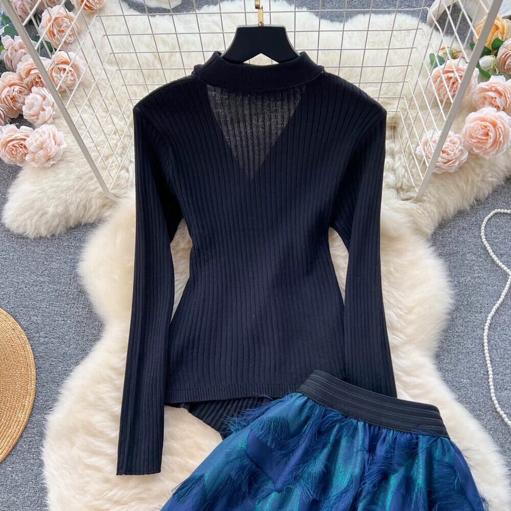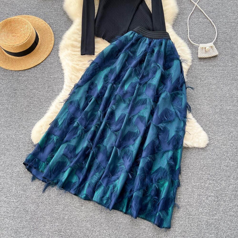やや脂肪痩身スーツ女性 2023 新しい長袖セーター多用途ハイウエスト A ラインスカート 2 点セット ロング Aライン lyxaj76983662619