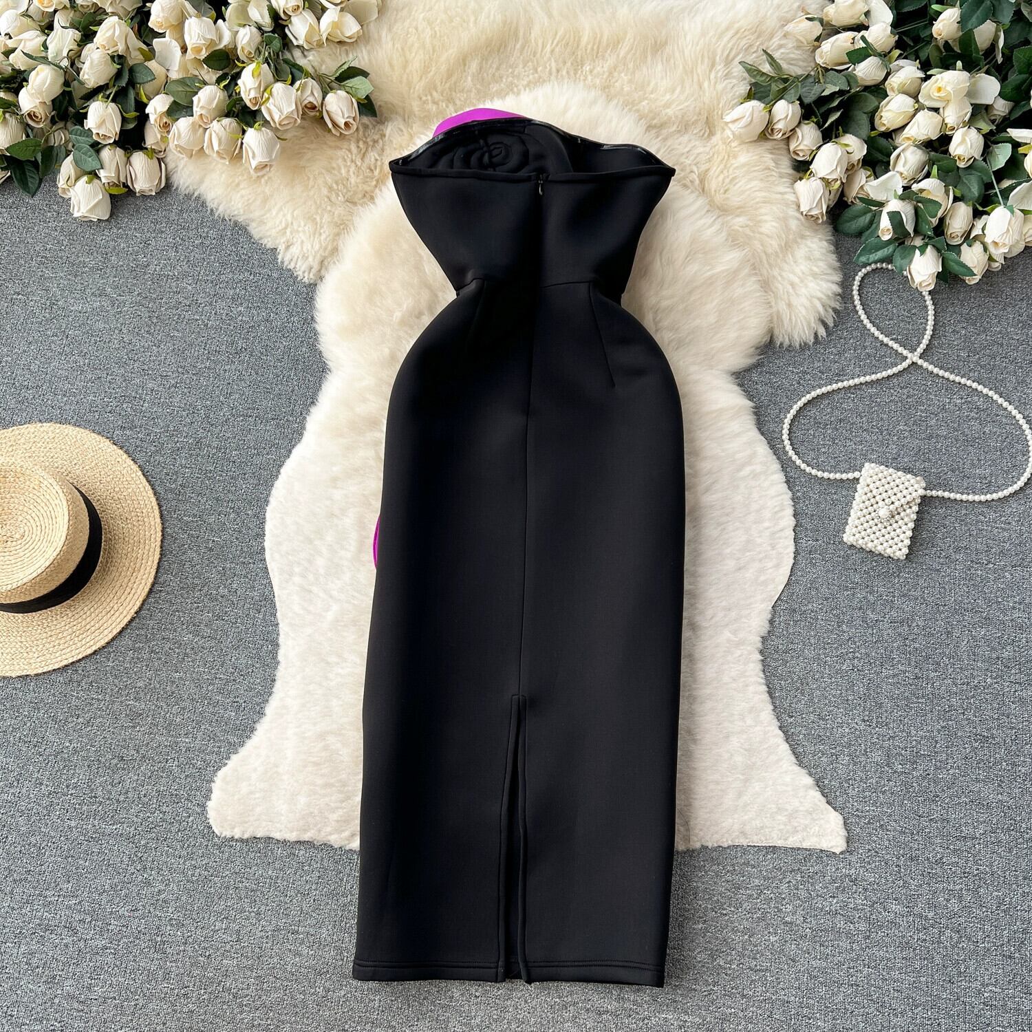 セレブのハイエンドエレガントな立体花コントラストカラーノースリーブチューブトップドレスロングスカート女性の新しいウエスト痩身ドレス フラワーデザイン lyxaj46910603702