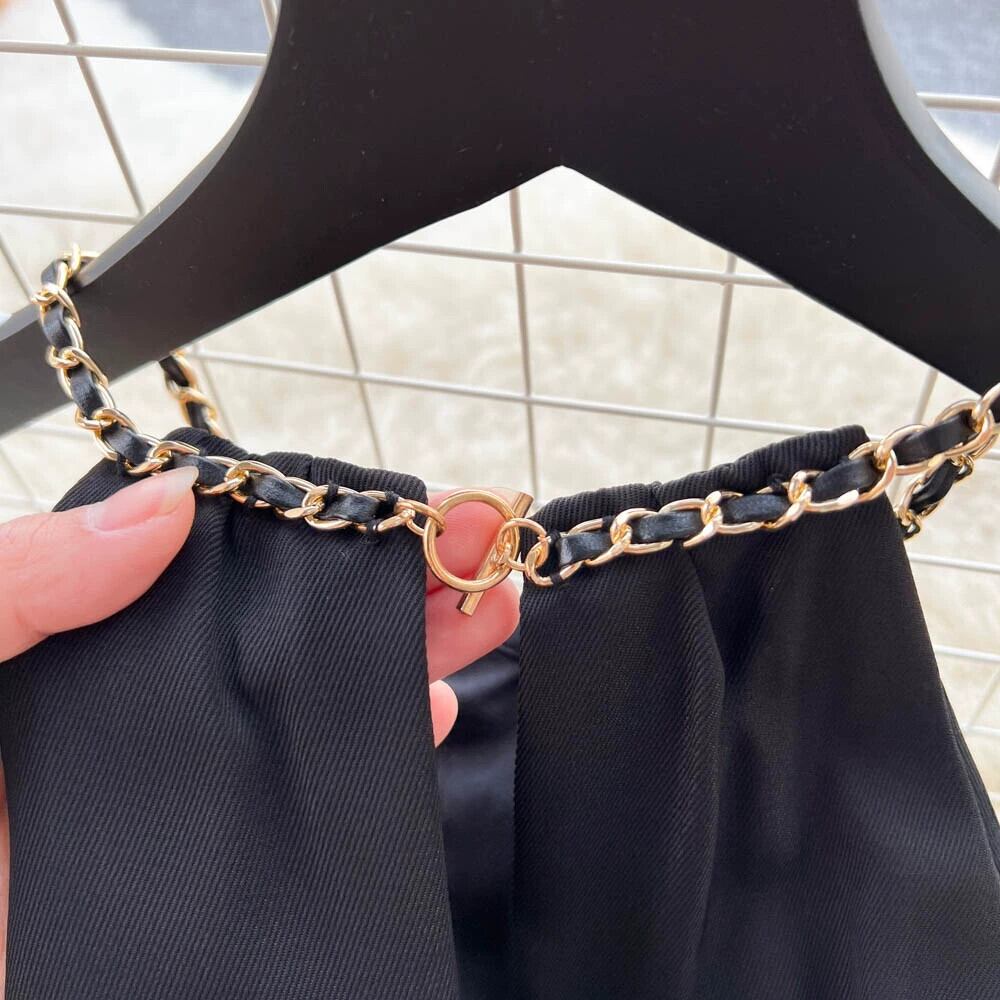 - 夏のニッチ高級ウエストレスノースリーブハイコールドロイヤルシスター気質ドレスの女性のホルターネックブラックサスペンダードレス サマー 夏物 lyxaj76867490109