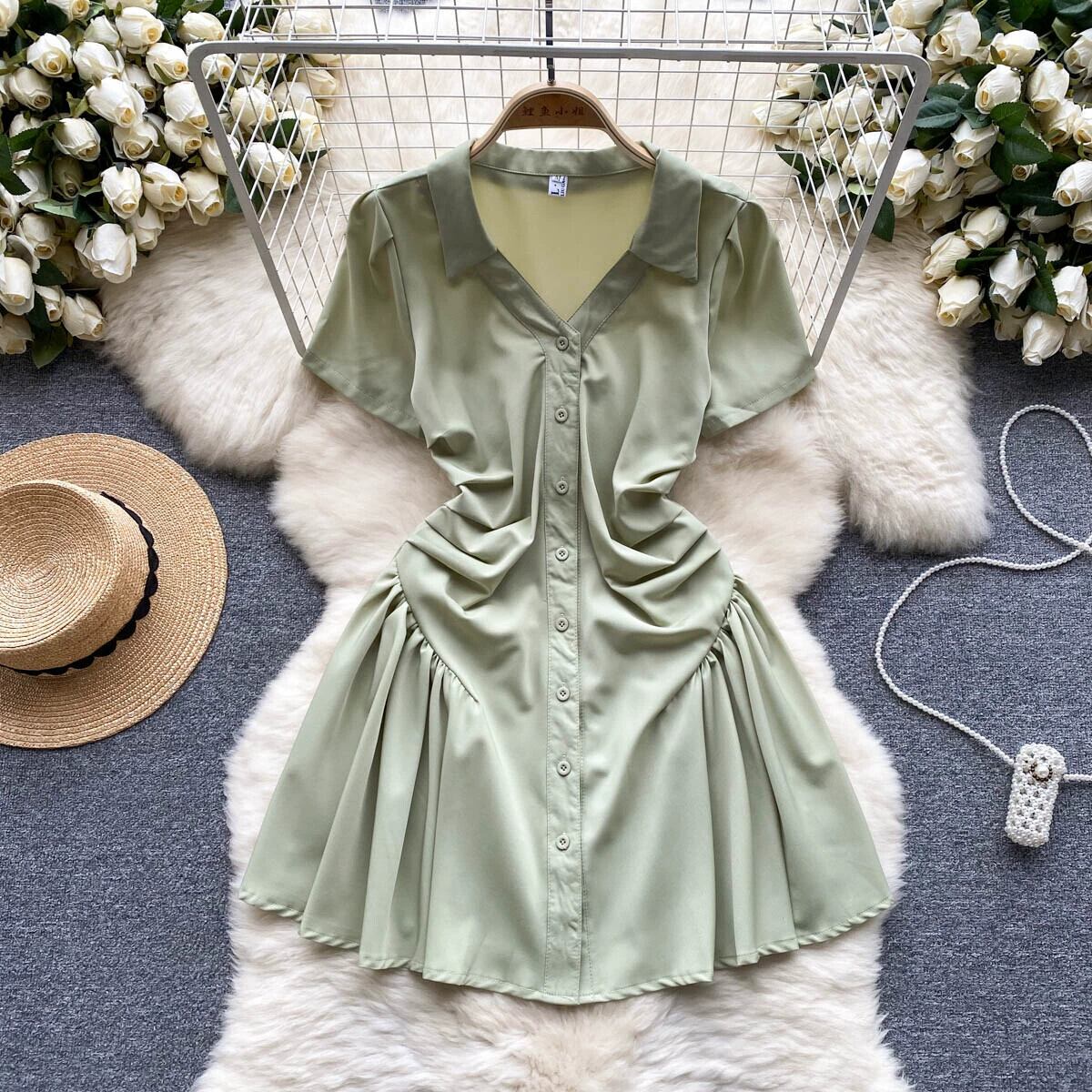 グリーンポロシャツドレス女性夏 2023 新しいニッチデザインハイエンドウエスト痩身スカート サマー 夏物 lyxaj73693268809