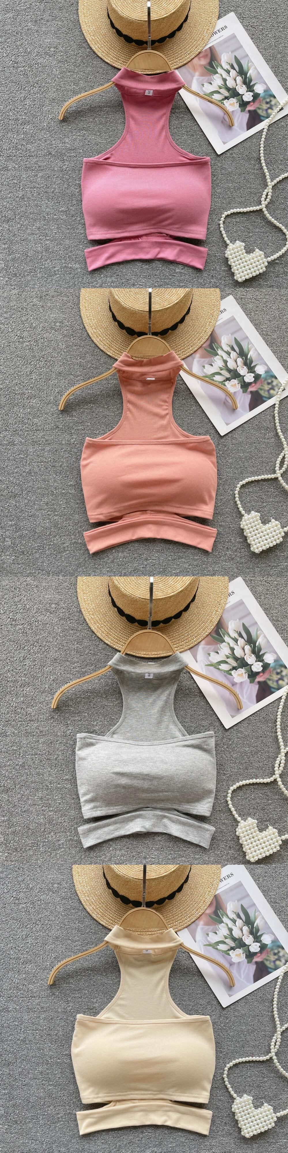 夏のセクシーな純粋な欲望ネクタイ ホルターネック中空チューブ トップ女性のスリム フィットと胸パッド付きの多目的アウター トップ サマー 夏物 ピュア lyxaj58562433067