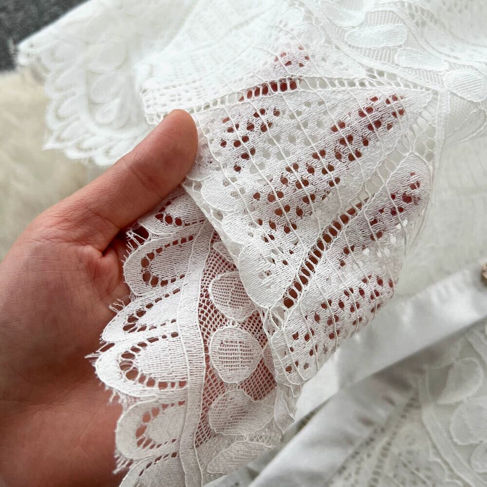 フランスのハイエンドのエレガントなラペル半袖中空かぎ針編みレースドレス、幅広の裾がフェミニンなウエストを締めるレディドレス lyxaj85794012615