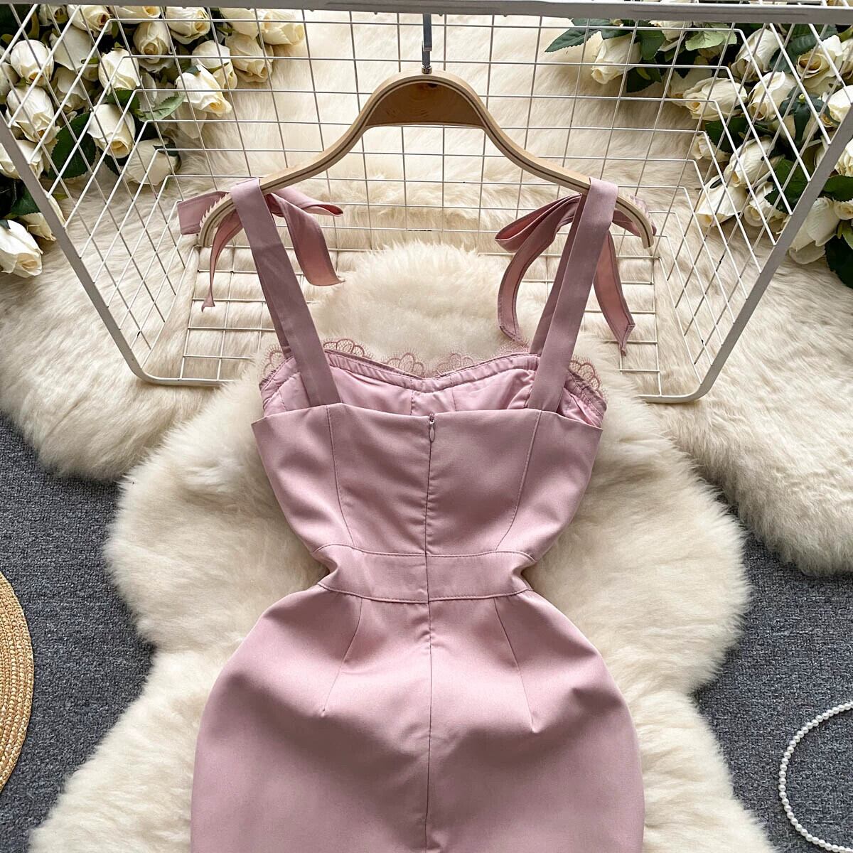 フレンチスイートラストサスペンダードレス女性夏の弓スリムニッチシックなホットガールヒップカバースカート リボン 大人ガーリー スウィート キュート カジュアル サマー 夏物 lyxaj83560766851