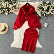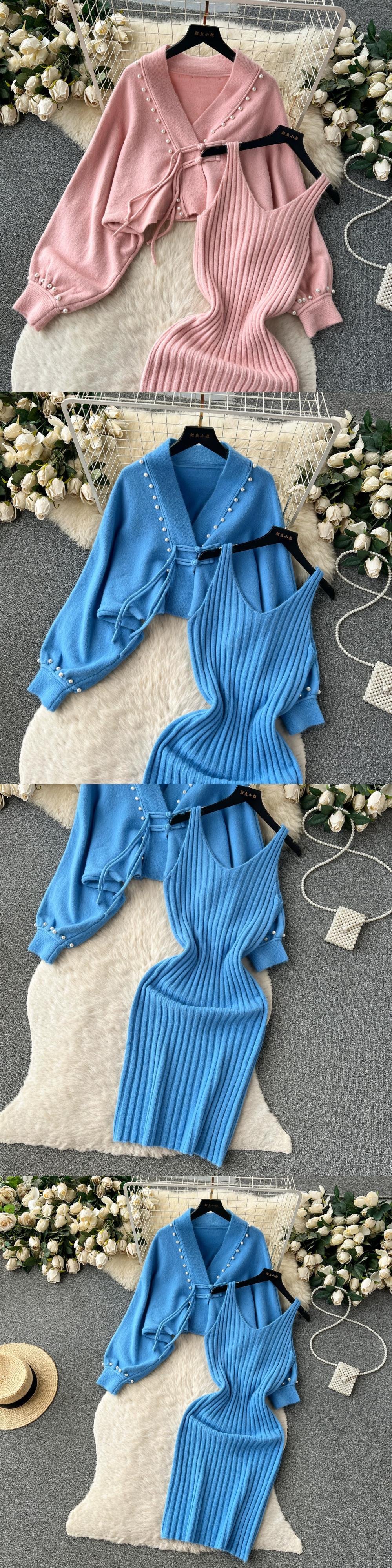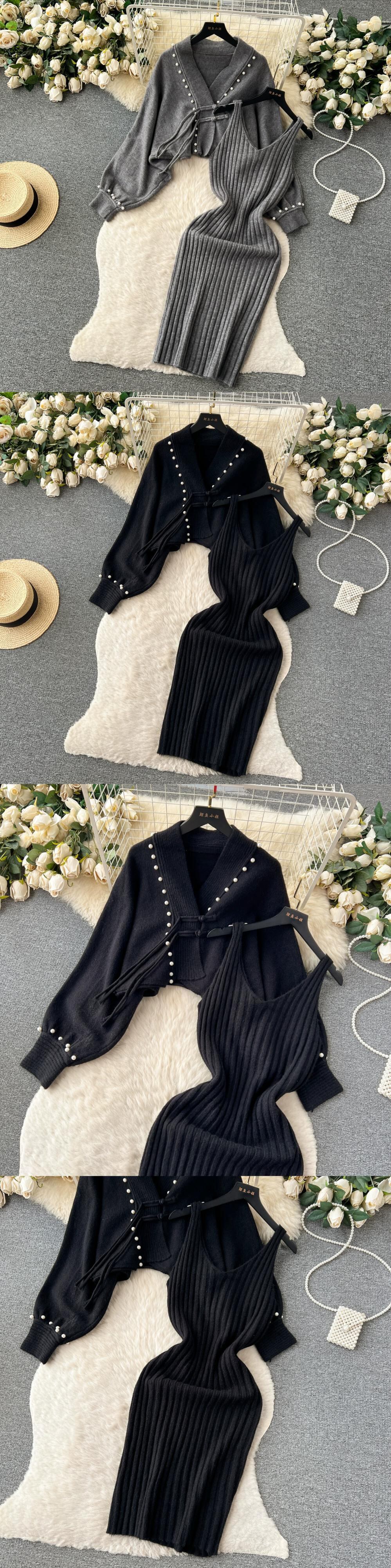 秋と冬の有能なスーツの女性、ハイエンドのスリムなヒップハグサスペンダードレス+レトロなゆったりとしたニットショールジャケット オータム 秋物 ウィンター 冬物 スリムヒップ lyxaj79498597838