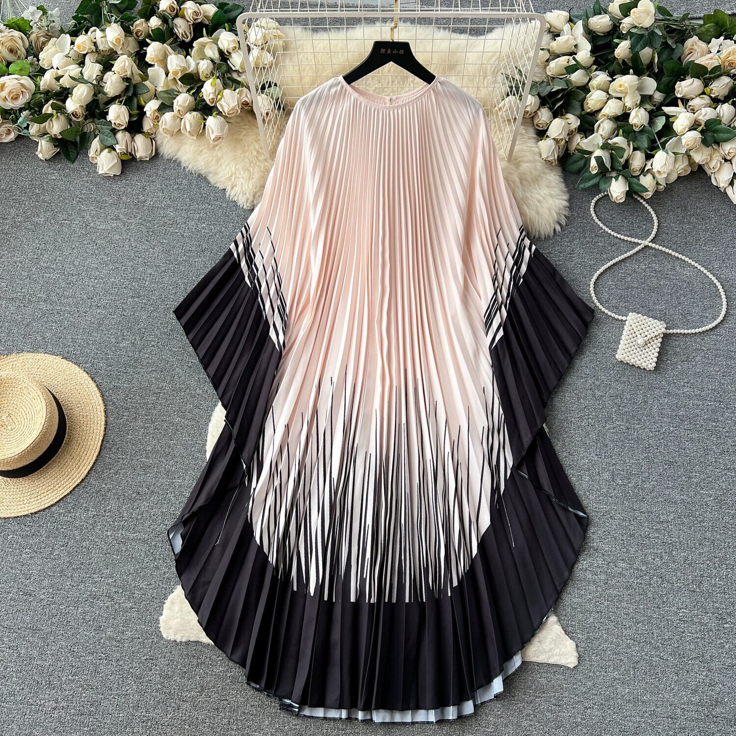 ヨーロッパのレトロなバットスリーブ大きな裾プリントスカート女性の夏ルーズスリムカジュアルハイエンドエレガントなドレスファッション サマー 夏物 ヨーロピアン lyxaj3405860163