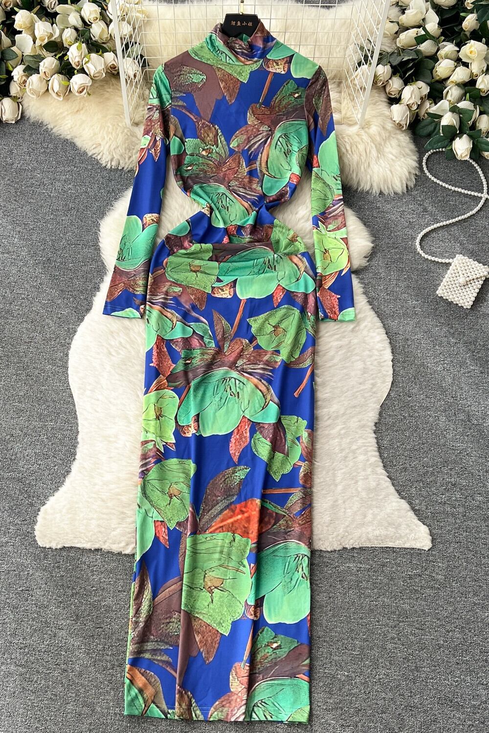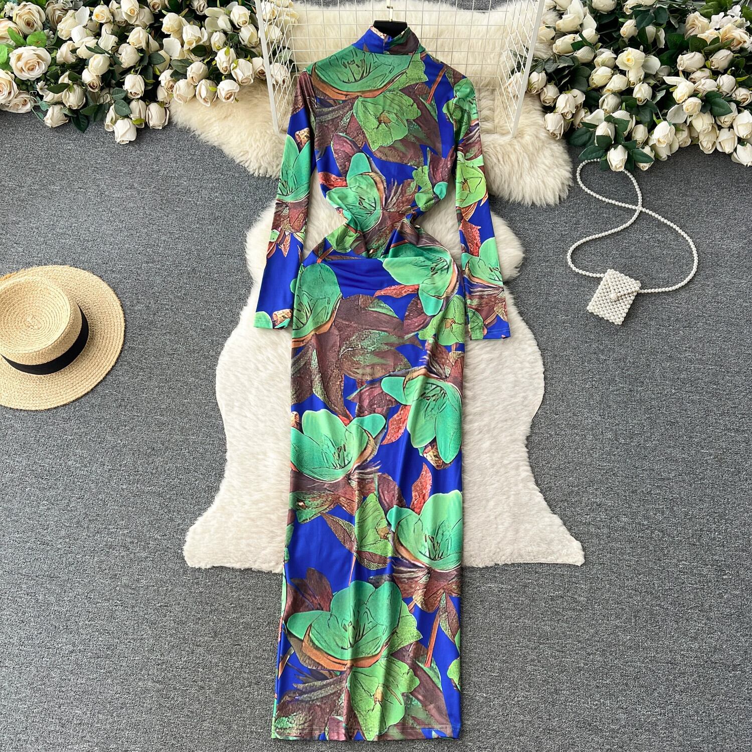 ヨーロッパとアメリカのハイエンドのファッションプリント長袖ドレスの女性の春と秋の新しいスリムフィットとスリムな気質のヒップハグスカート ロング スプリング 春物 オータム 秋物 ヨーロピアン lyxaj8309495533
