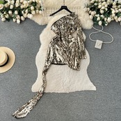 純粋な欲望ハイエンドスラントネックオフショルダー長袖スパンコールドレス女性スリム痩身リボンヒップパーティードレス ロング lyxaj43612701940