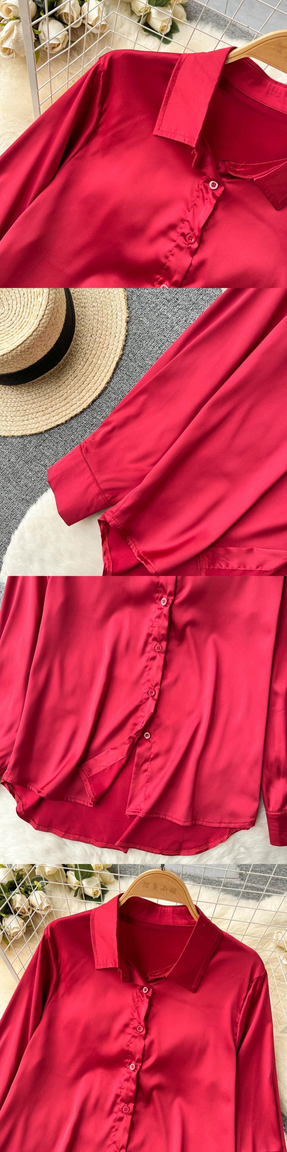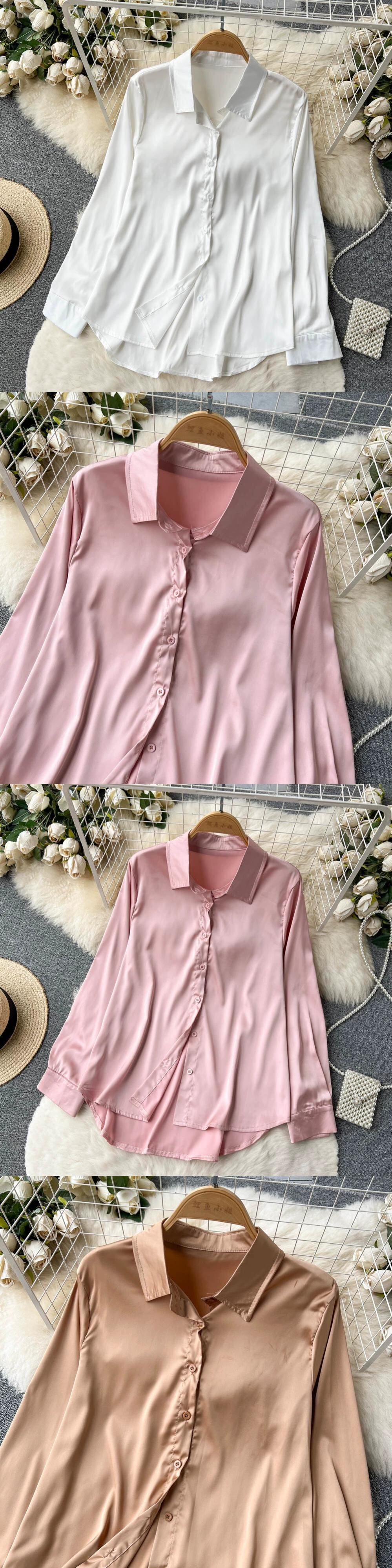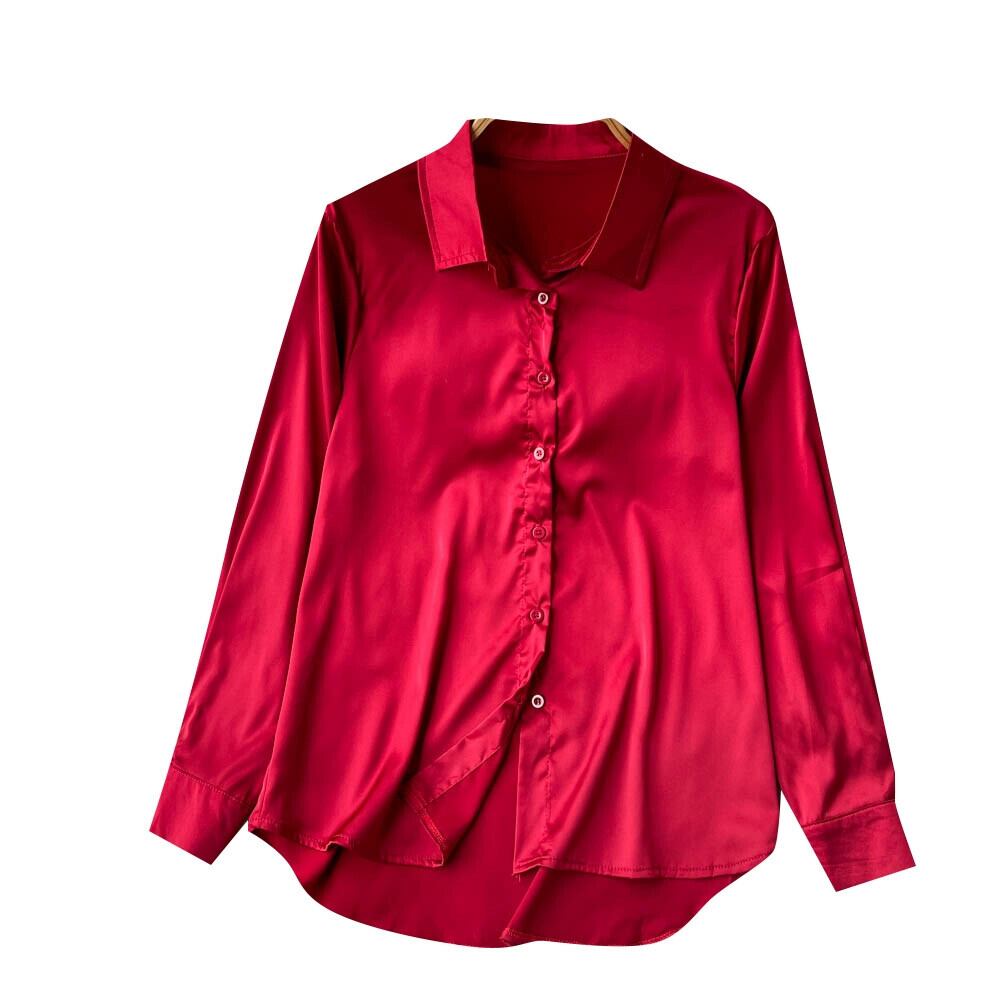 春の新スタイルフレンチレトロサテンシャツレディースデザインニッチ気質ハイエンド長袖シックシャツトレンド ロング スプリング 春物 lyxaj86920018333