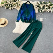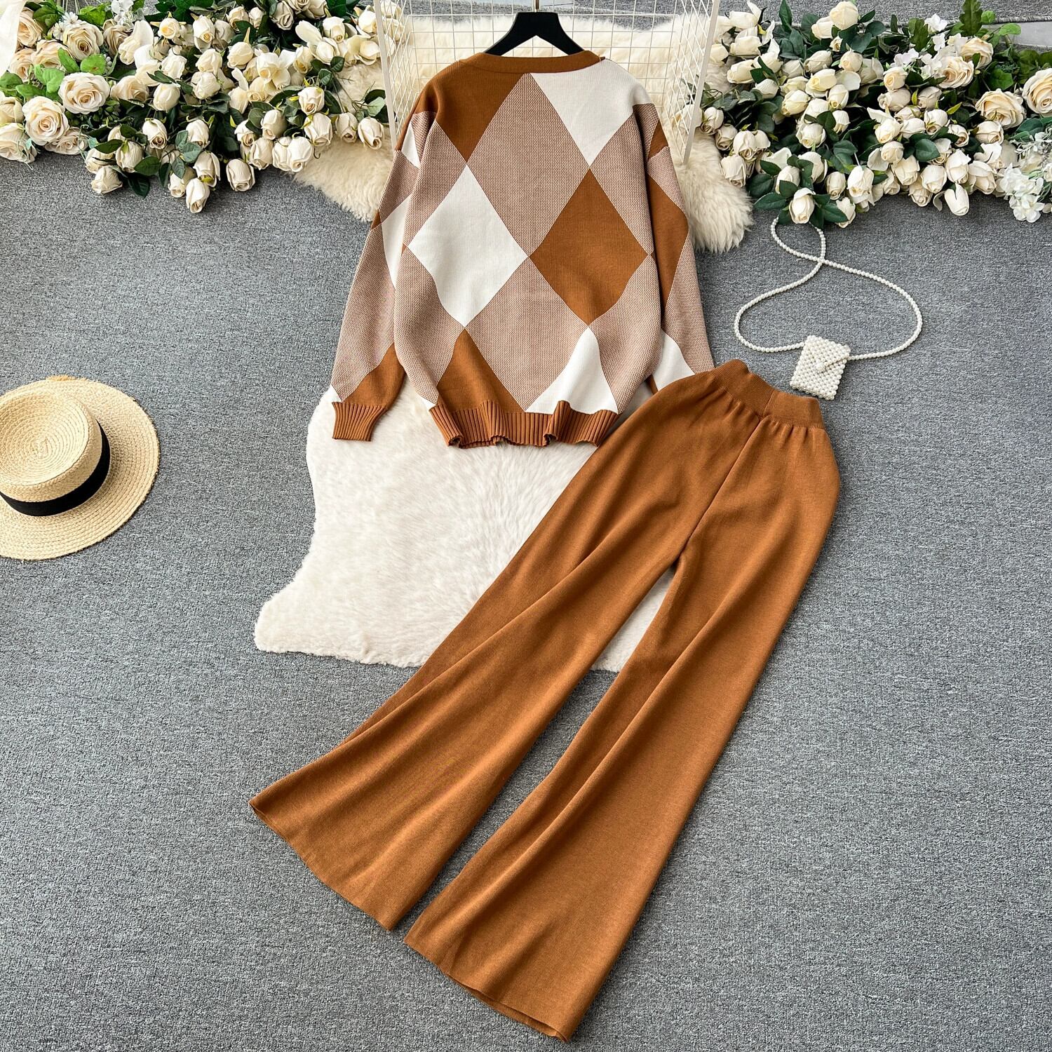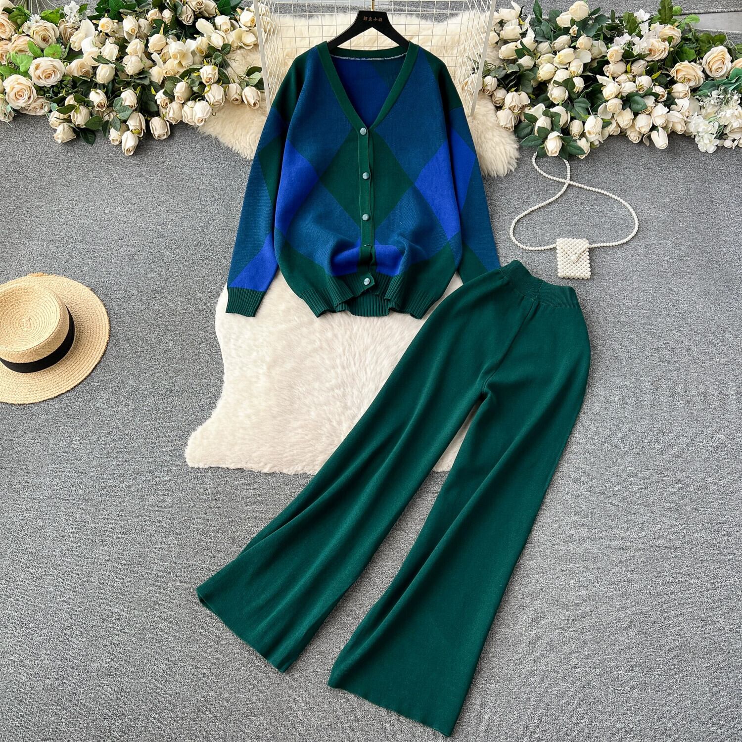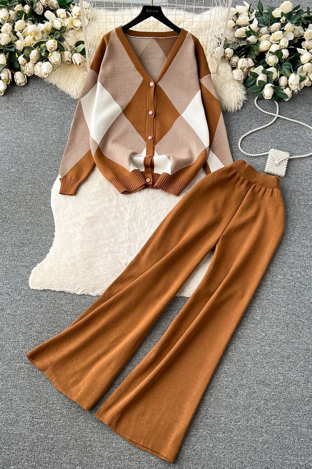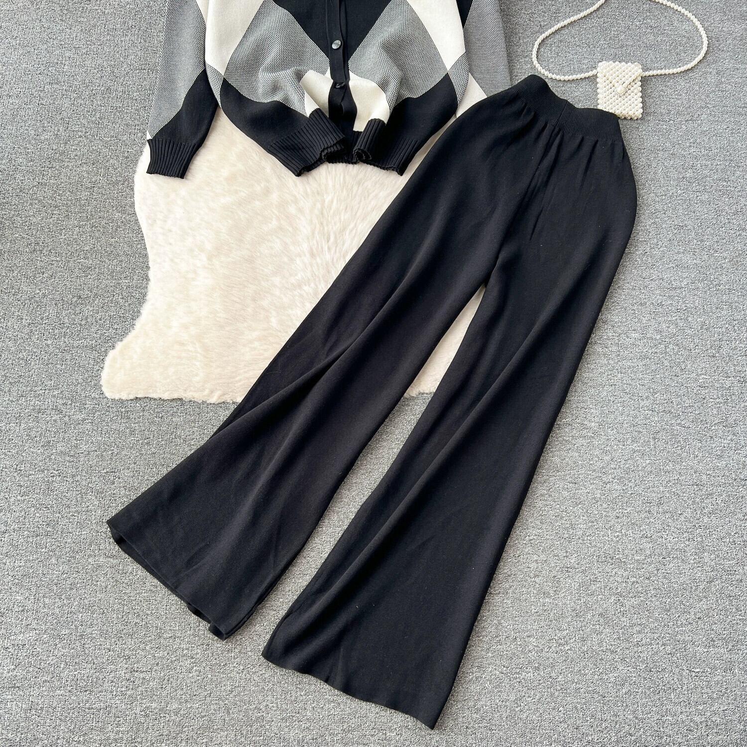 ニッチハイエンドレディスタイルニットカーディガンセータージャケット+ハイウエスト痩身ワイドレッグフロアレングスパンツ2点セット lyxaj61070328506