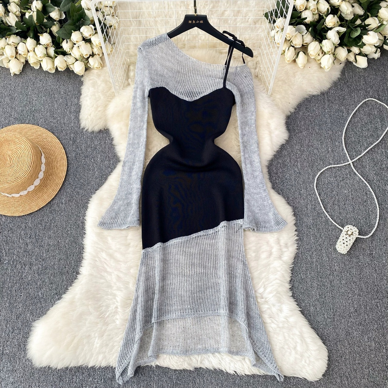 初秋のフランスの高級ドレスの女性の新しいスタイルのスプライシング不規則なデザインのニッチで美しいスーパーフェアリーフィッシュテールロングスカート オータム 秋物 lyxaj66225275974