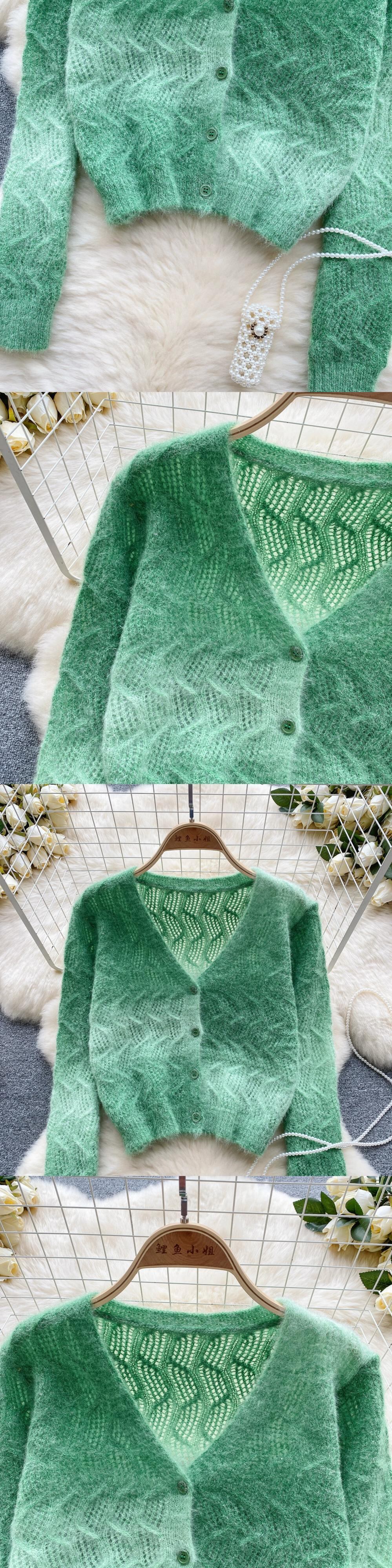 秋と冬の甘い豪華なニットセータージャケット女性ルーズショートスタイルファッショナブルな年齢を軽減するグラデーション長袖カーディガンセータートレンディな ロング 大人ガーリー スウィート キュート カジュアル オータム 秋物 ウィンター 冬物 lyxaj51402739191