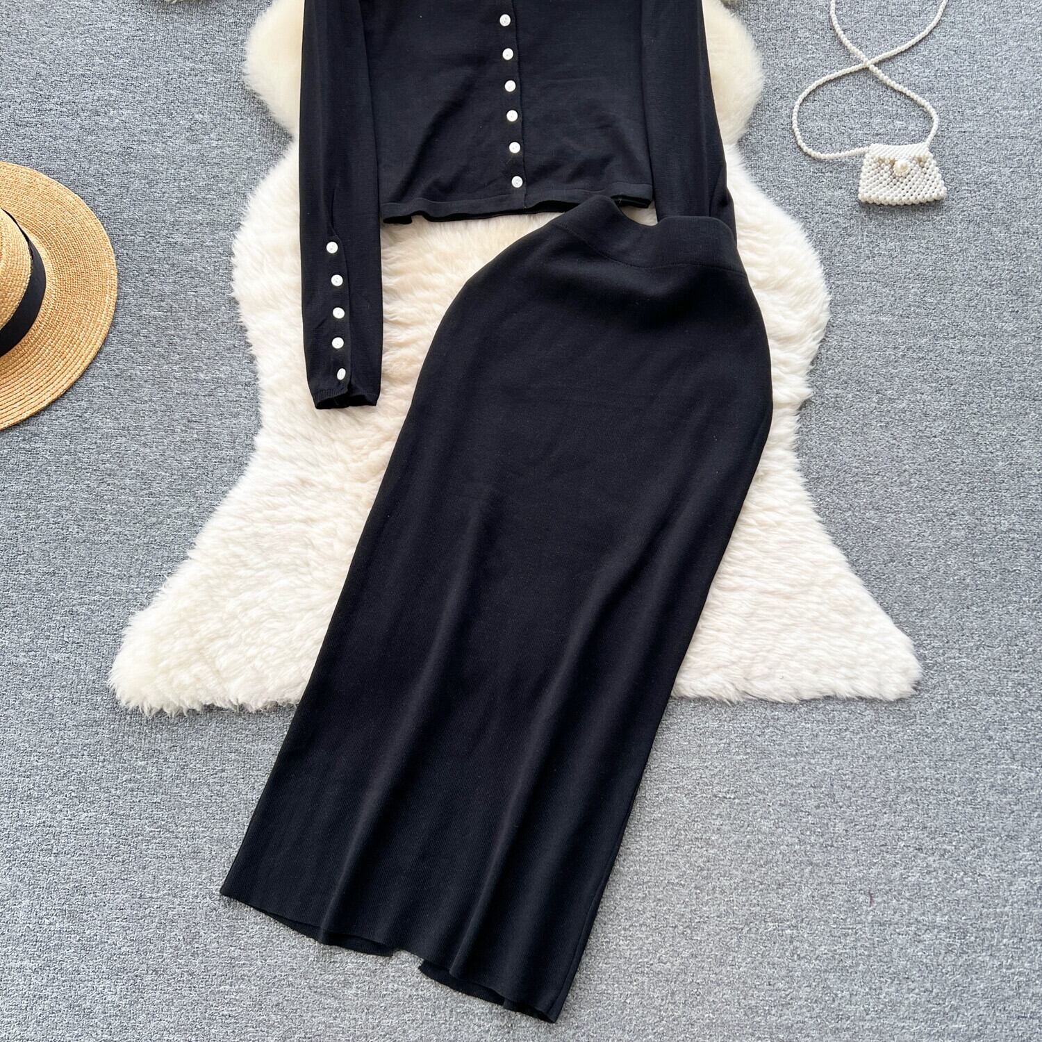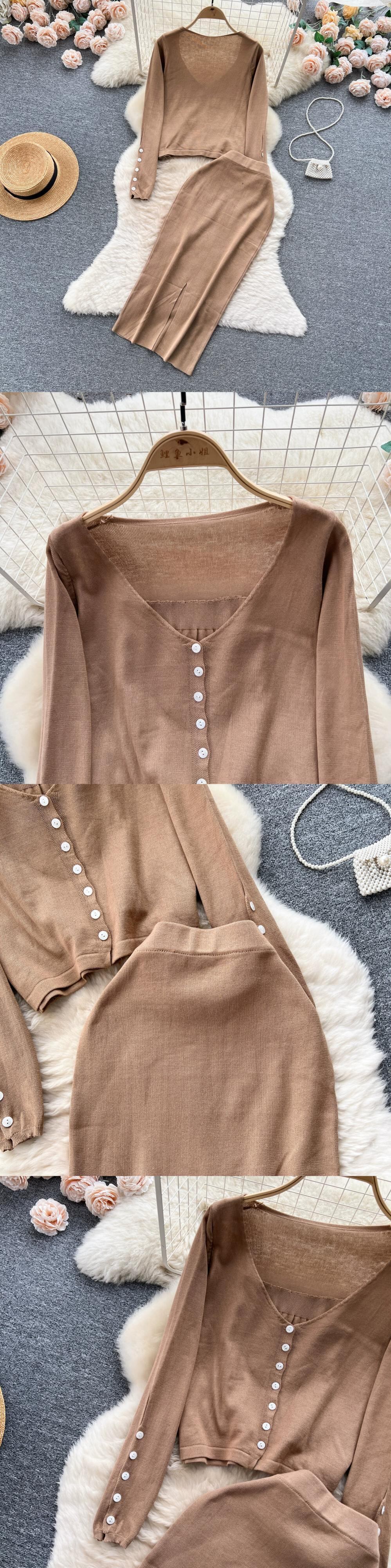 スタイルカジュアルファッション 3 点セット女性秋ルーズでスリムなニットカーディガンジャケットヒップカバースカートスーツスカート オータム 秋物 lyxaj63775827804