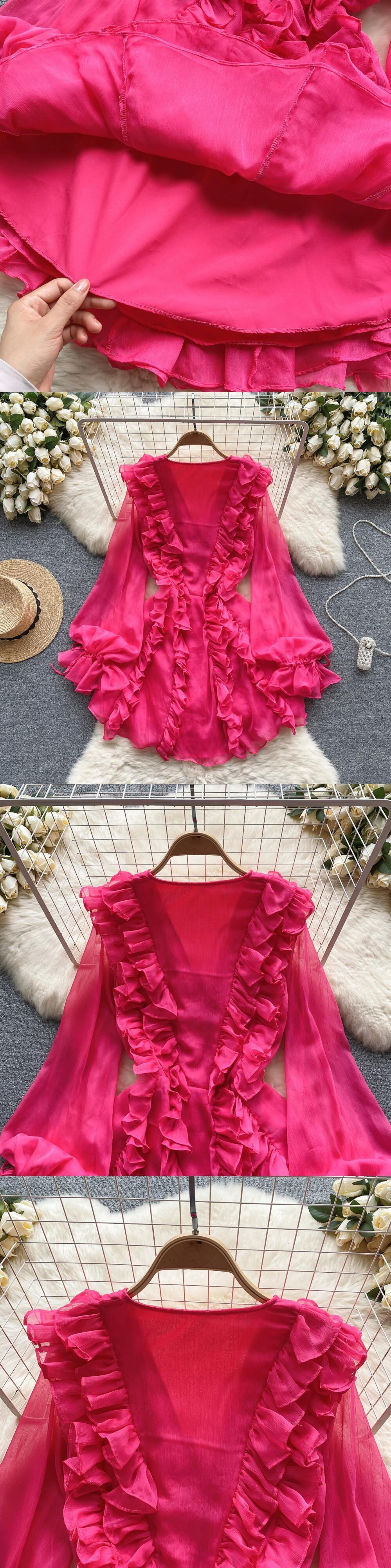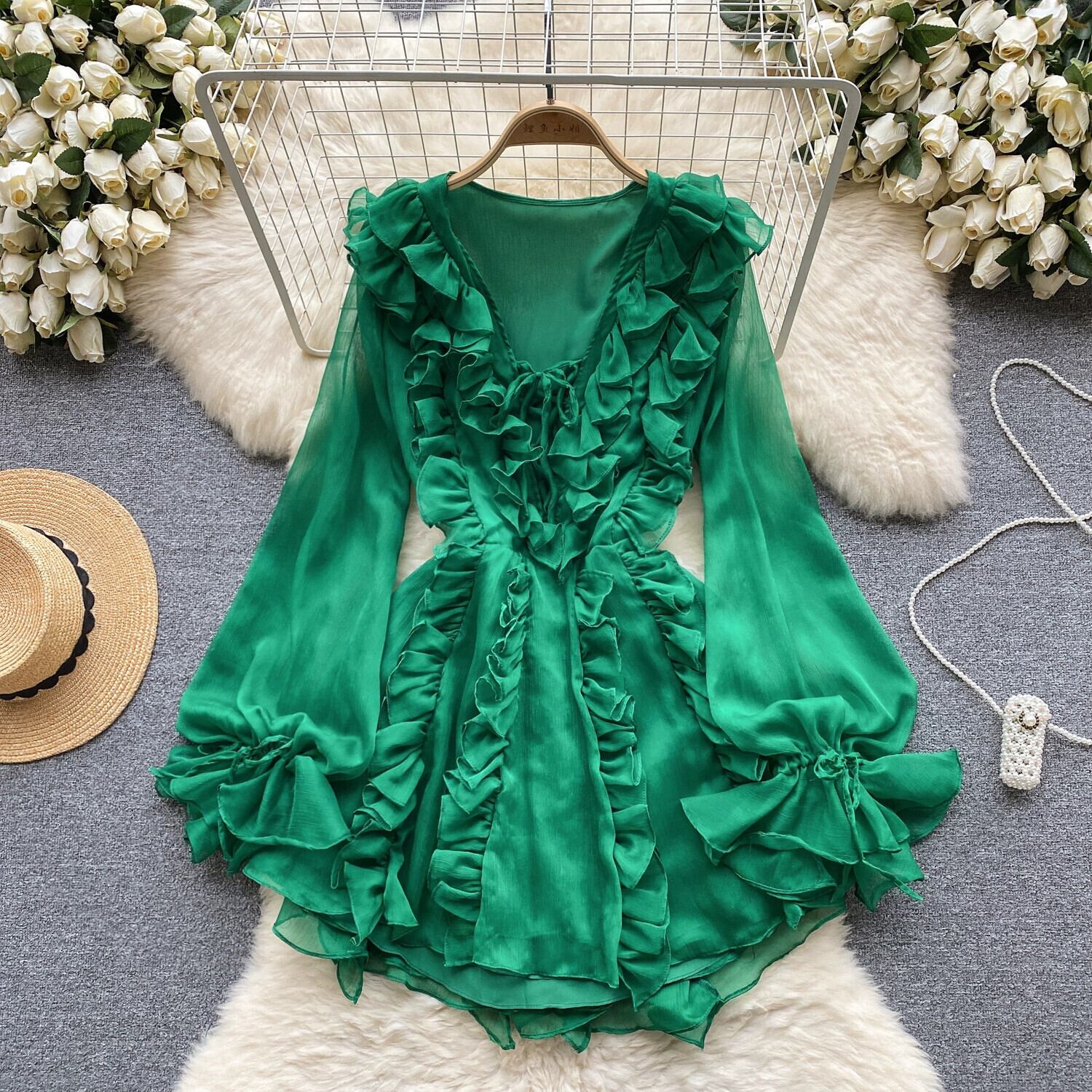 耳の形をしたVネックデザインのニッチセレブとスーパーフェアリートップスを備えた秋のフレンチレトロスタイルメッシュドレスレディース オータム 秋物 lyxaj28315536016