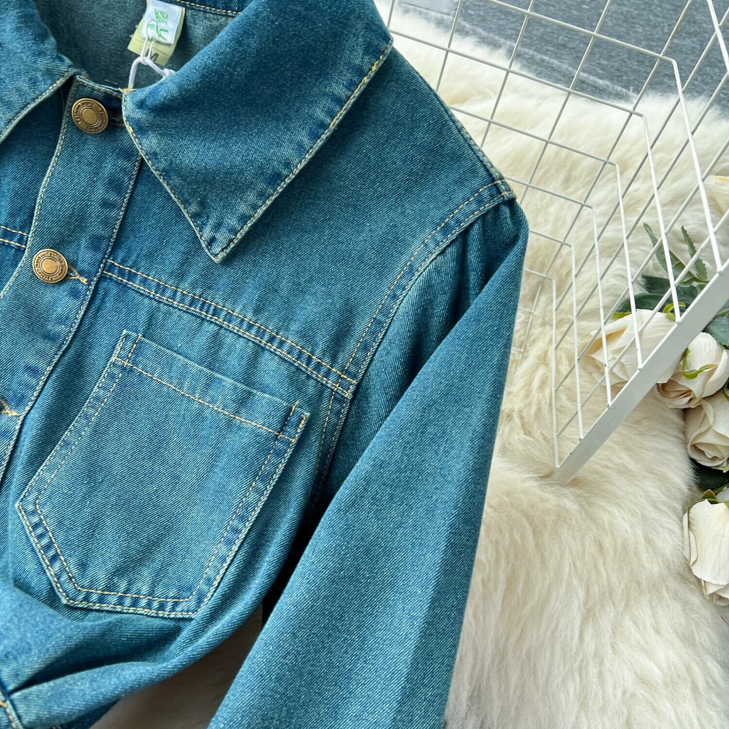 秋のフランスの高級デニムドレスの女性、長袖ウエストデザイン、ニッチ、シック、軽くて豪華なロングスカート オータム 秋物 lyxaj71535897515