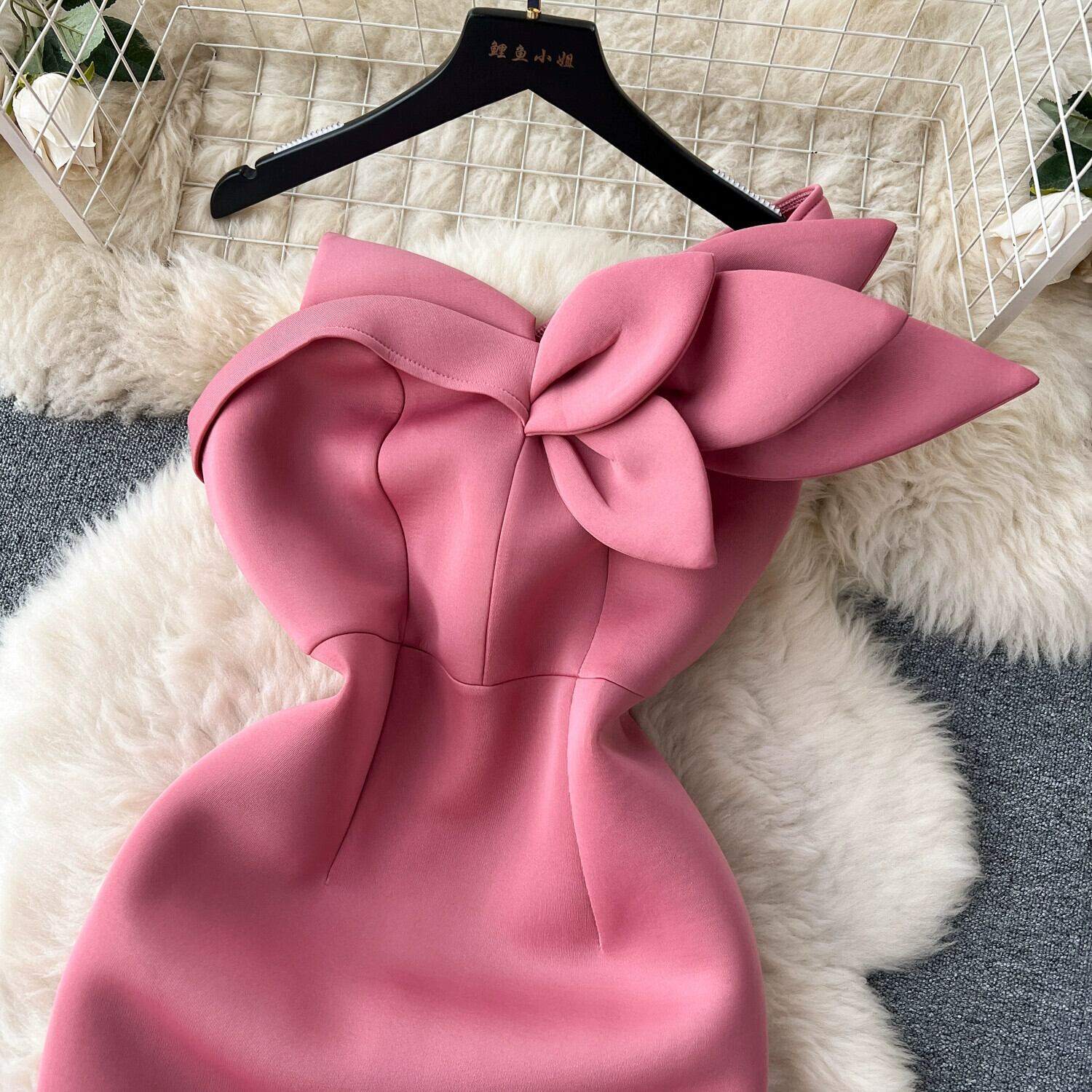 ヨーロッパとアメリカの軽い高級感とハイエンドの立体的なフラワーチューブトップドレスの女性、スリムでエレガントなスリットヒップカバードレス フラワーデザイン ヨーロピアン lyxaj49261011917