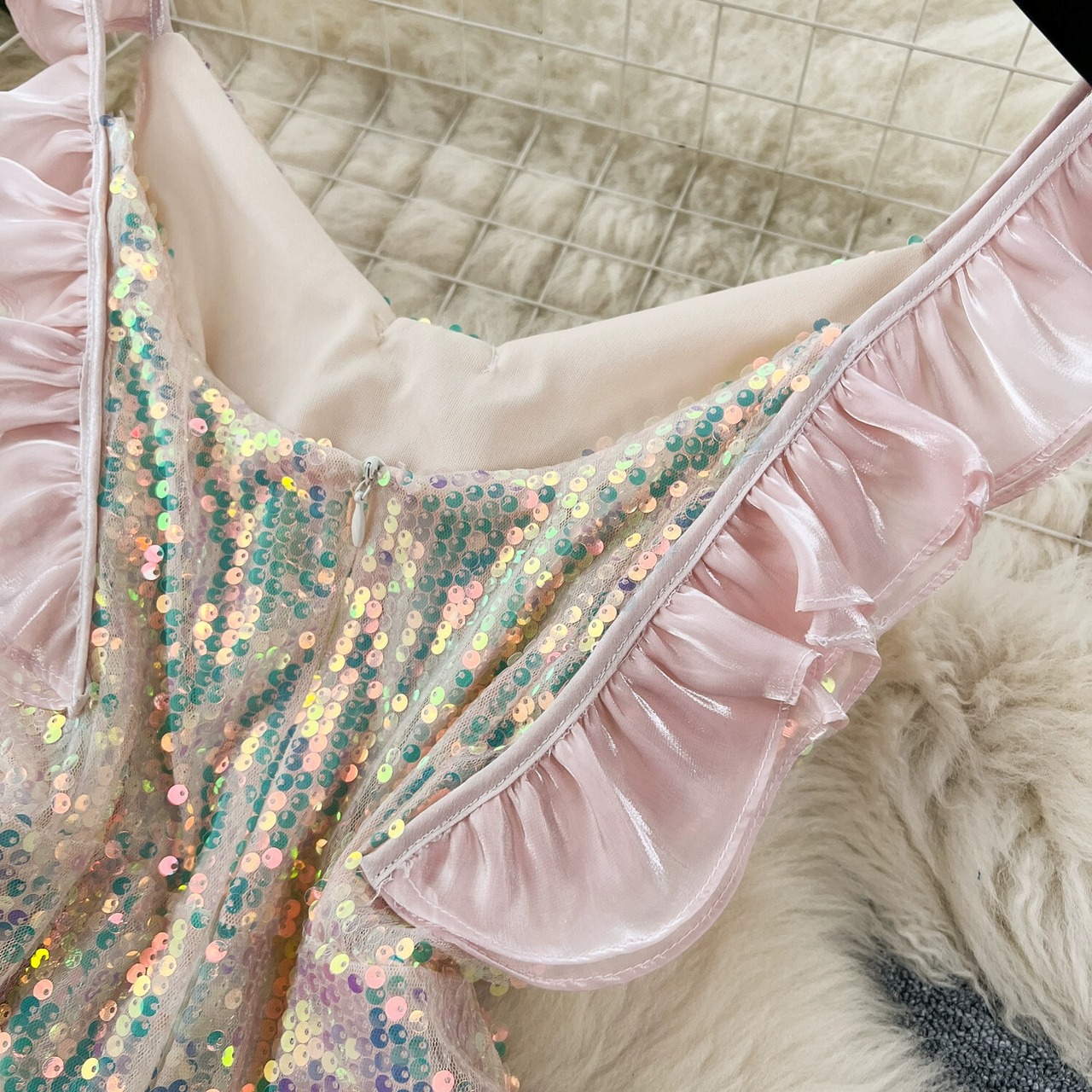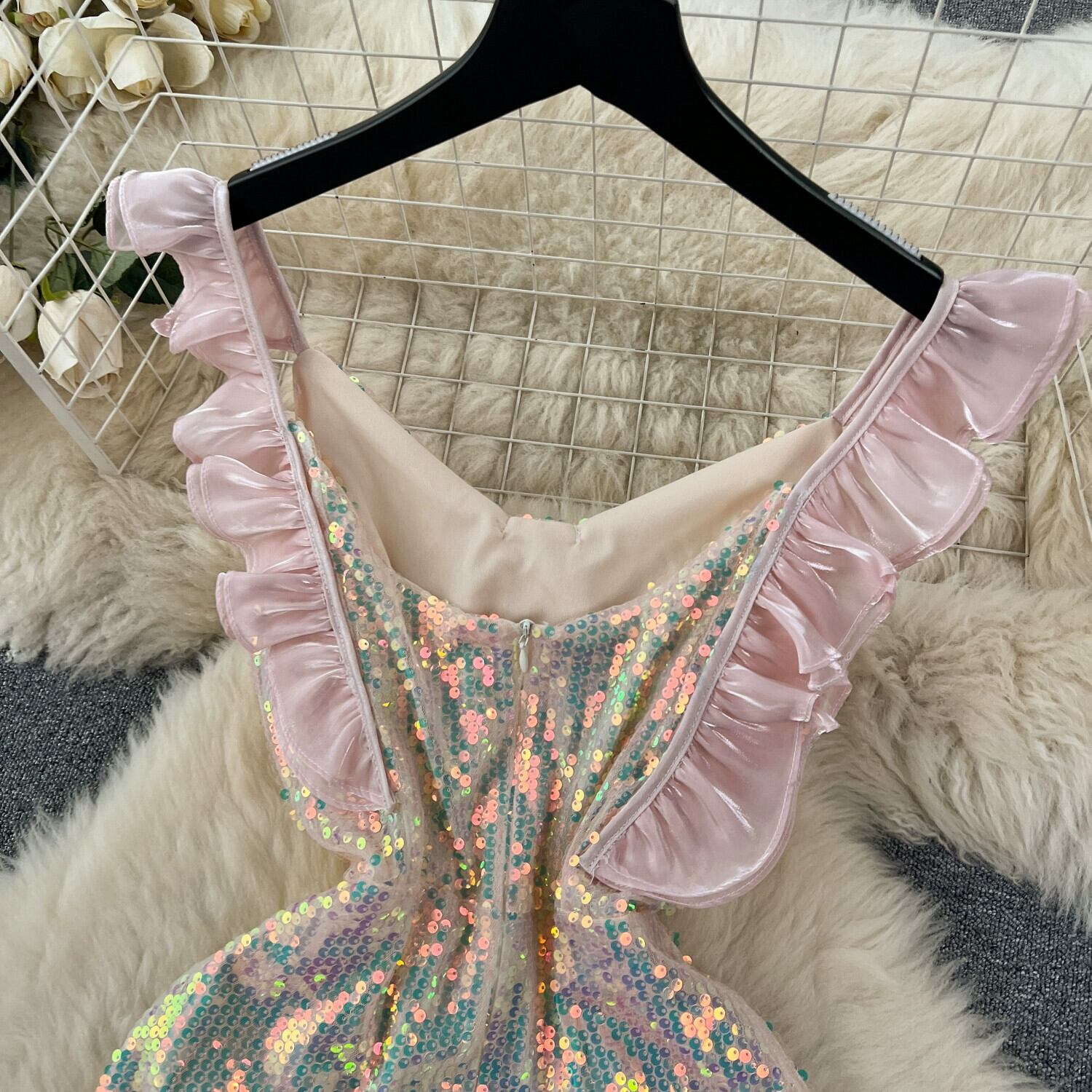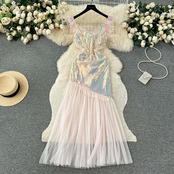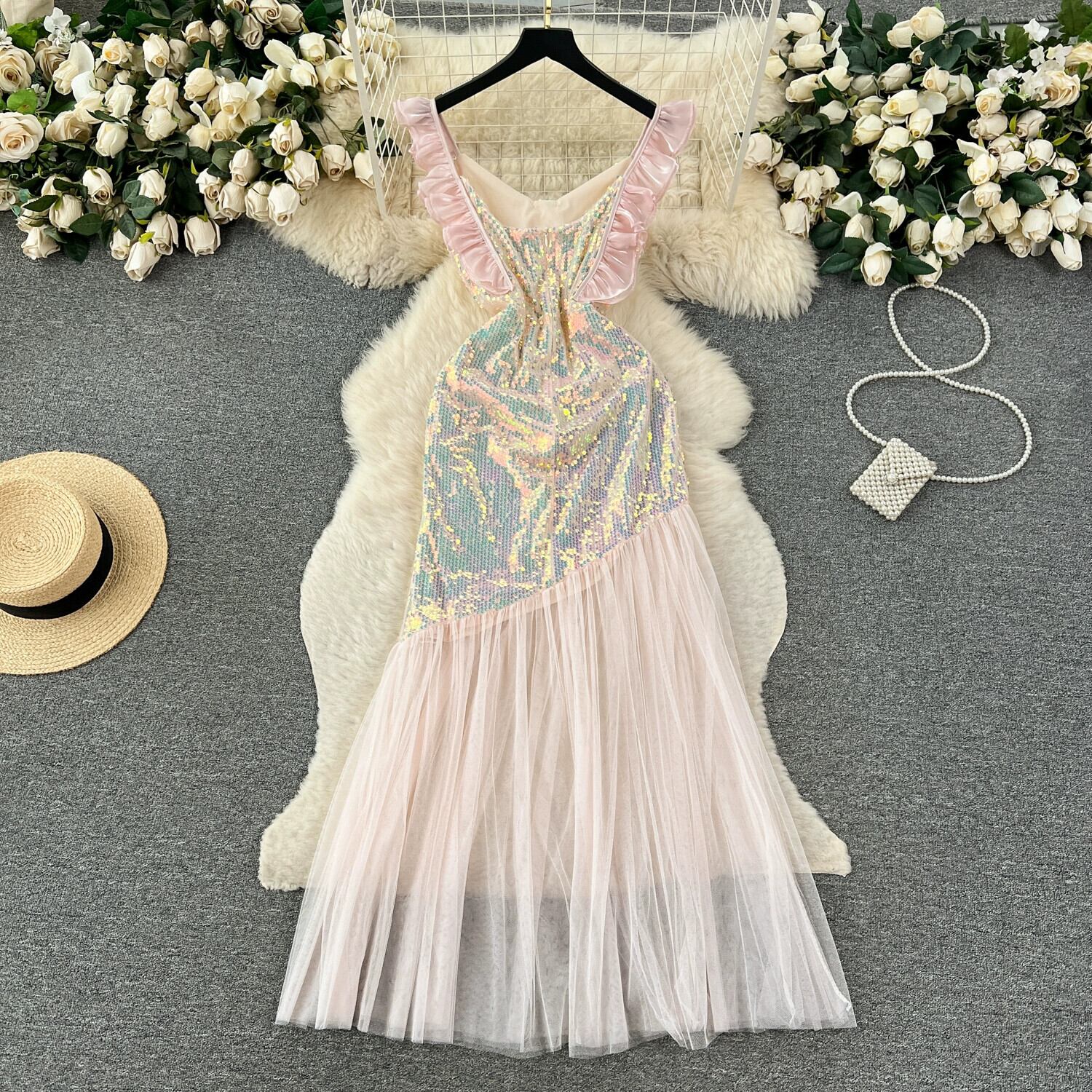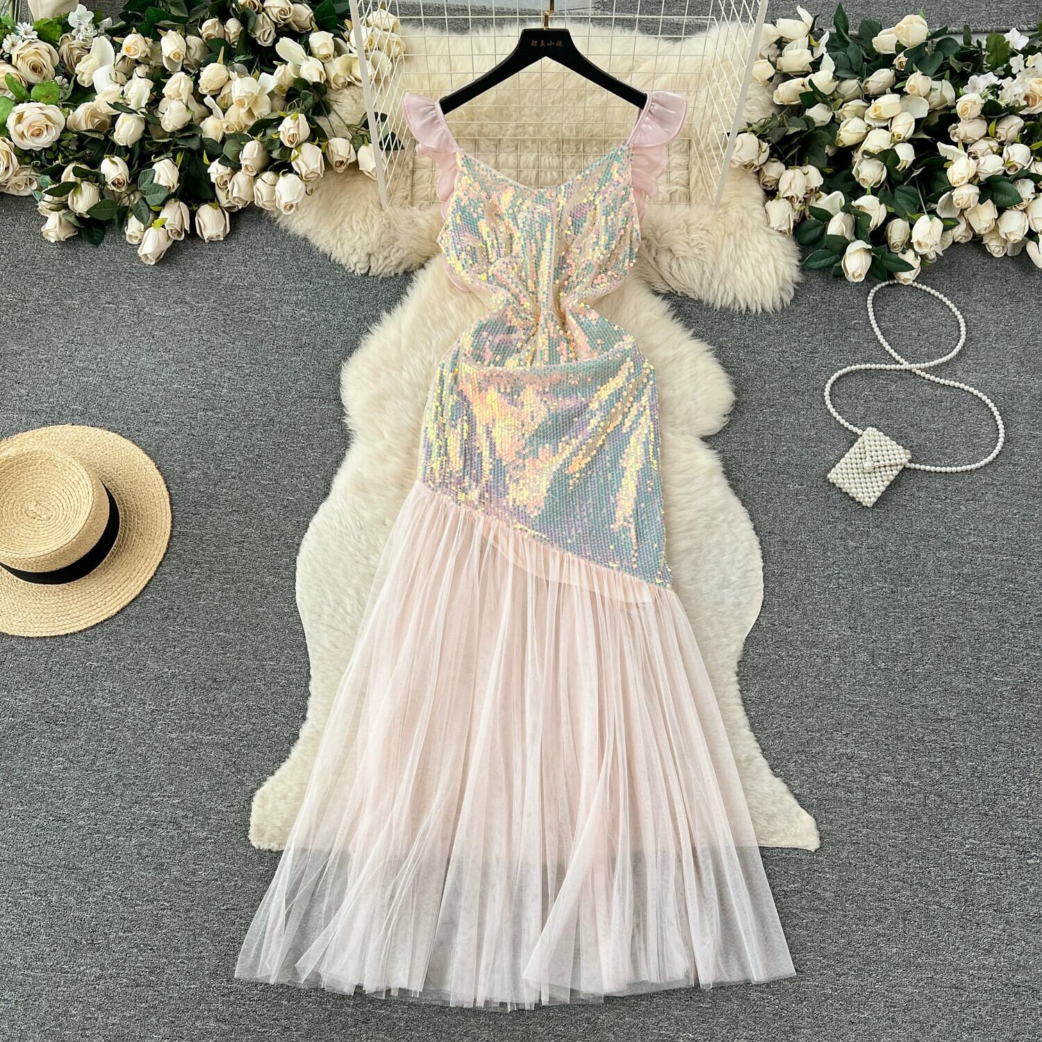 ニッチライトラグジュアリーレディスタイル宴会パーティードレス女性のハイエンドスリム痩身メッシュスプライシングスパンコールドレス lyxaj35881842684
