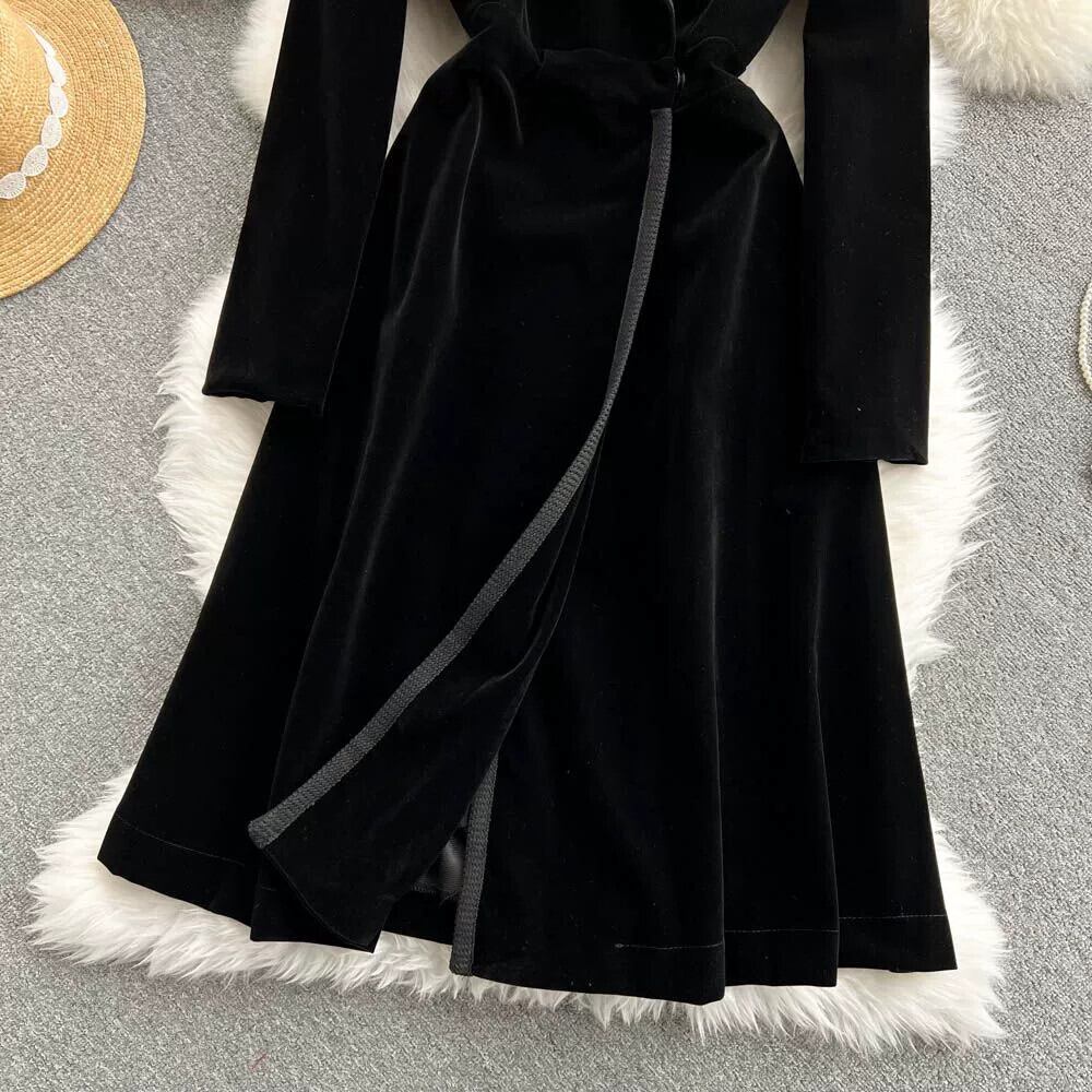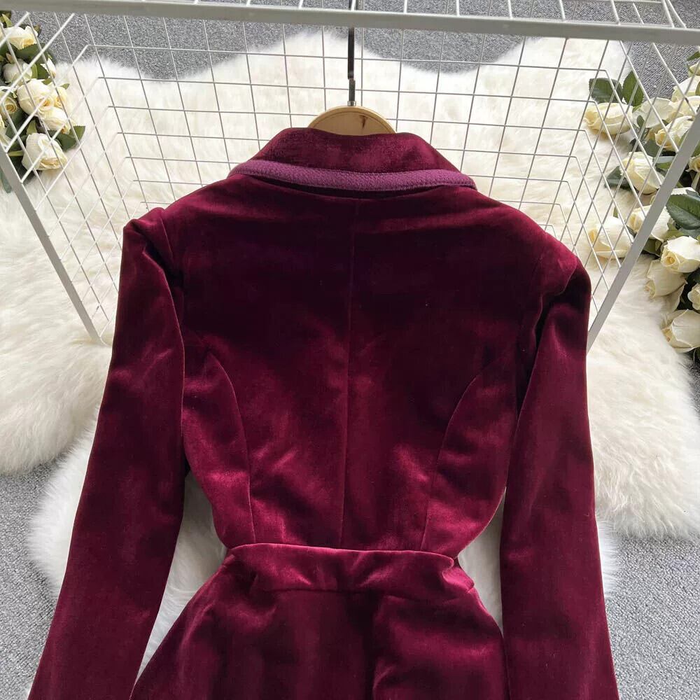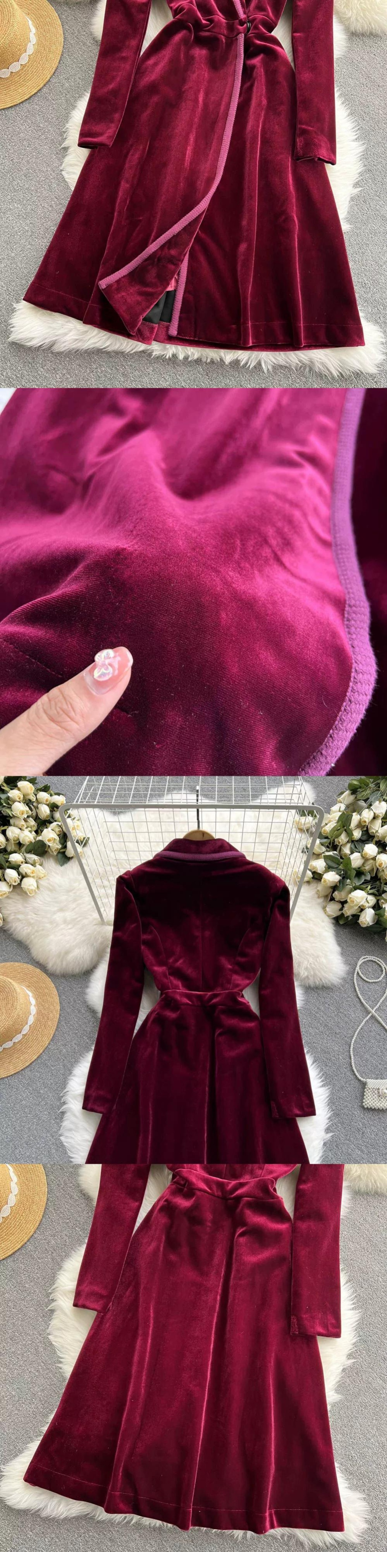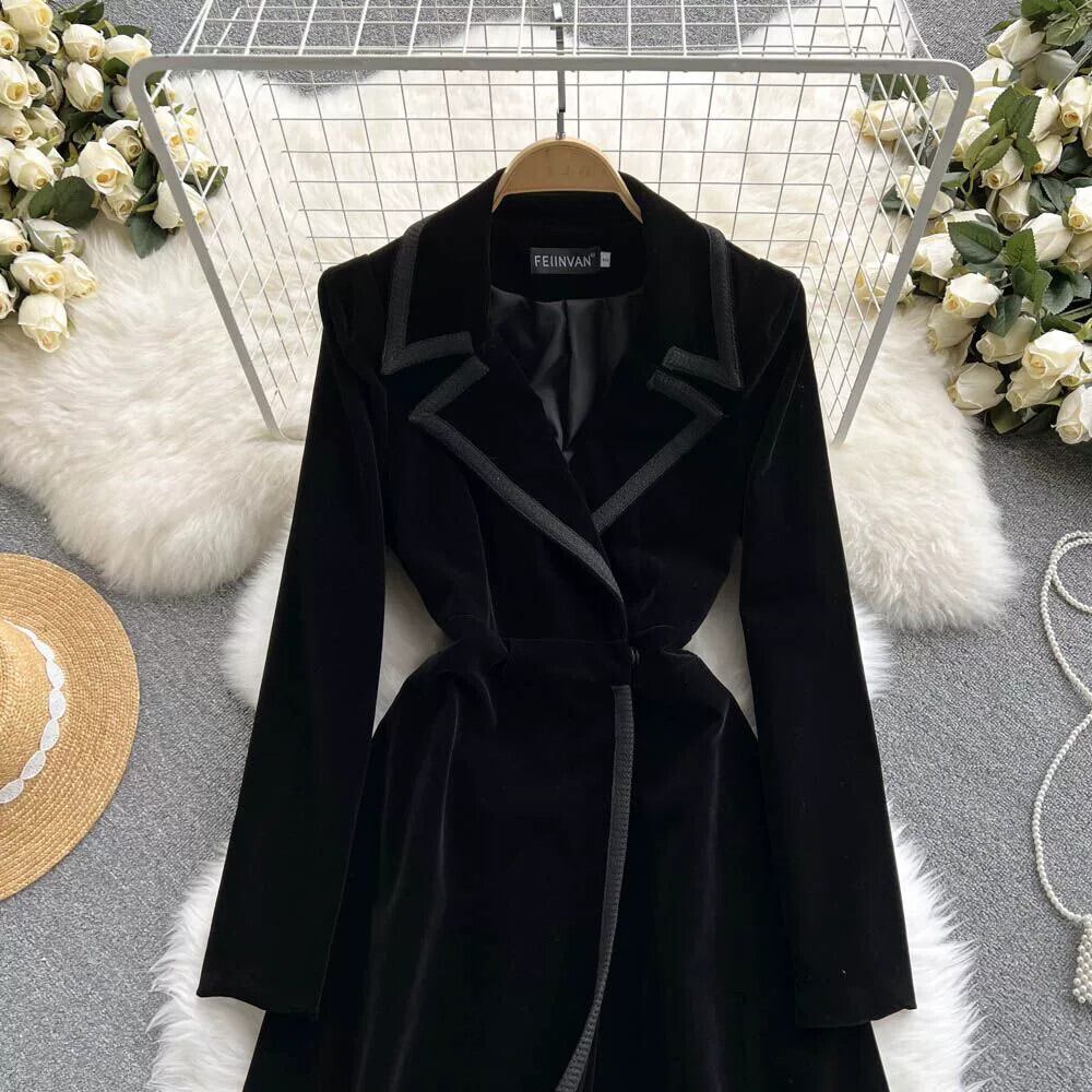 ヘップバーンスタイルのベルベットのドレスの女性の秋と冬 2023 新しい気質スーツの襟スリムミッドレングスウインドブレーカージャケット オータム 秋物 ウィンター 冬物 lyxaj91786120353