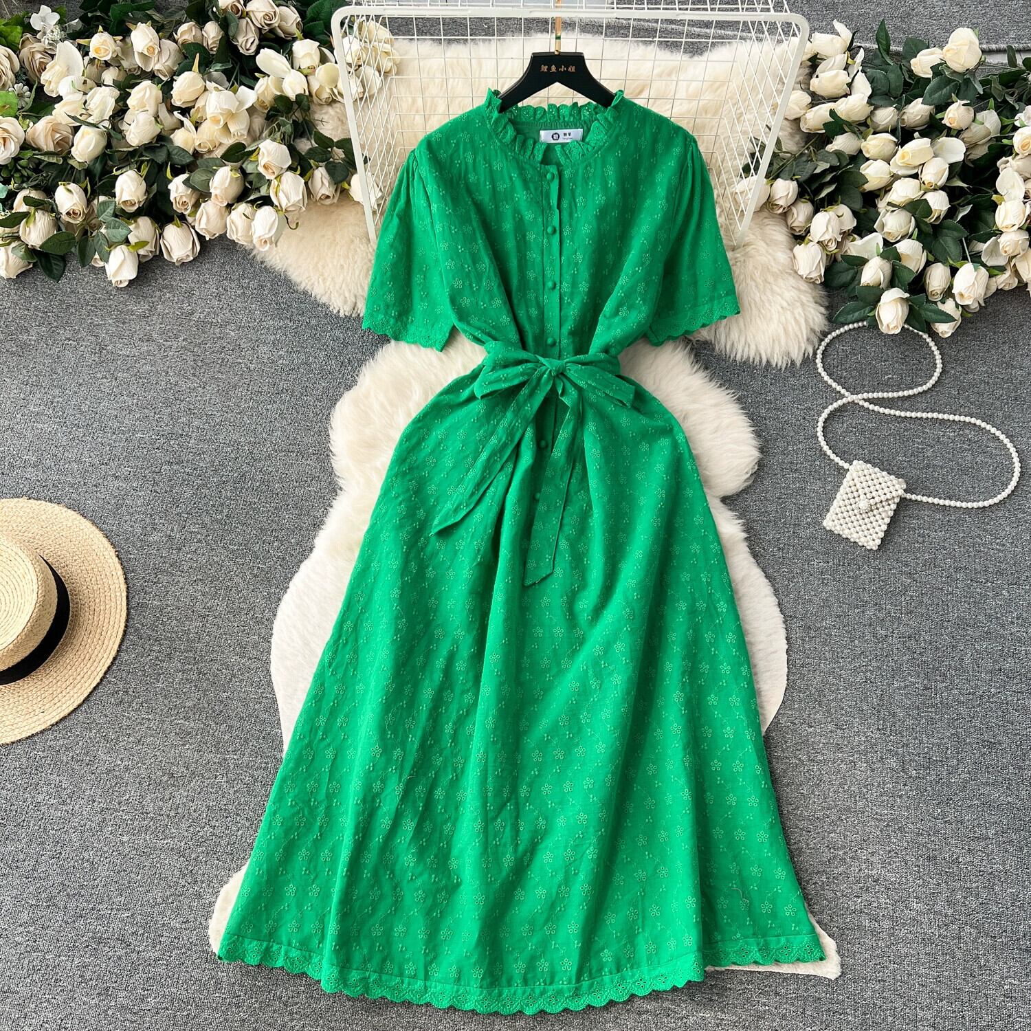 レトロロマンチックなライト高級ドレスの女性の夏のストラップウエストジャカードニッチシックな妖精のロングドレス サマー 夏物 lyxaj17743376931