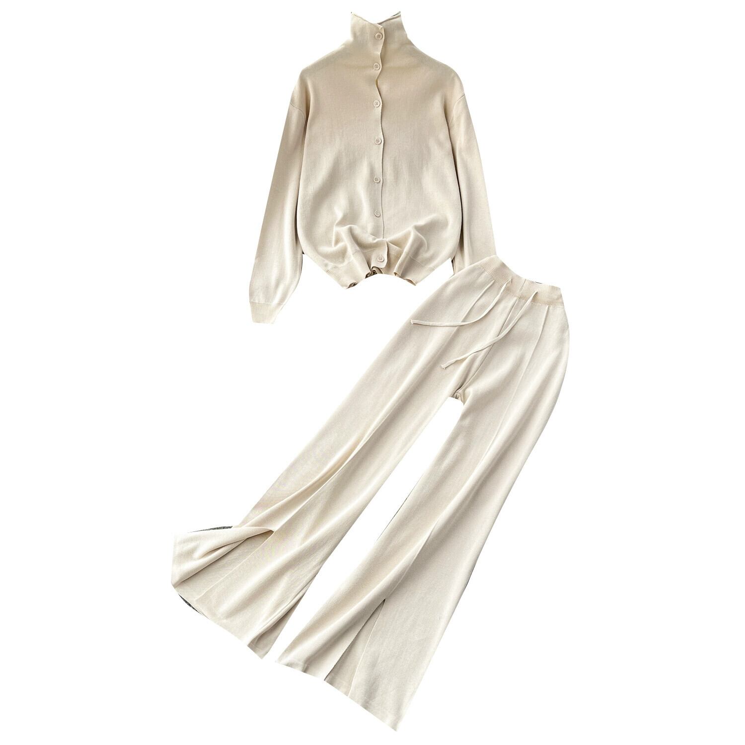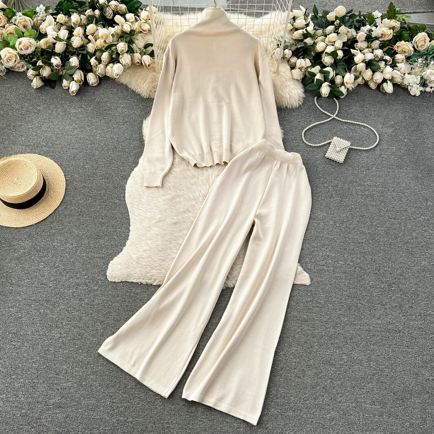 スタイルハイエンド無地長袖ルーズセーター+ハイウエストスリットとスリムパンツ秋冬スーツ ロング オータム 秋物 ウィンター 冬物 ソリッドカラー lyxaj82594907755