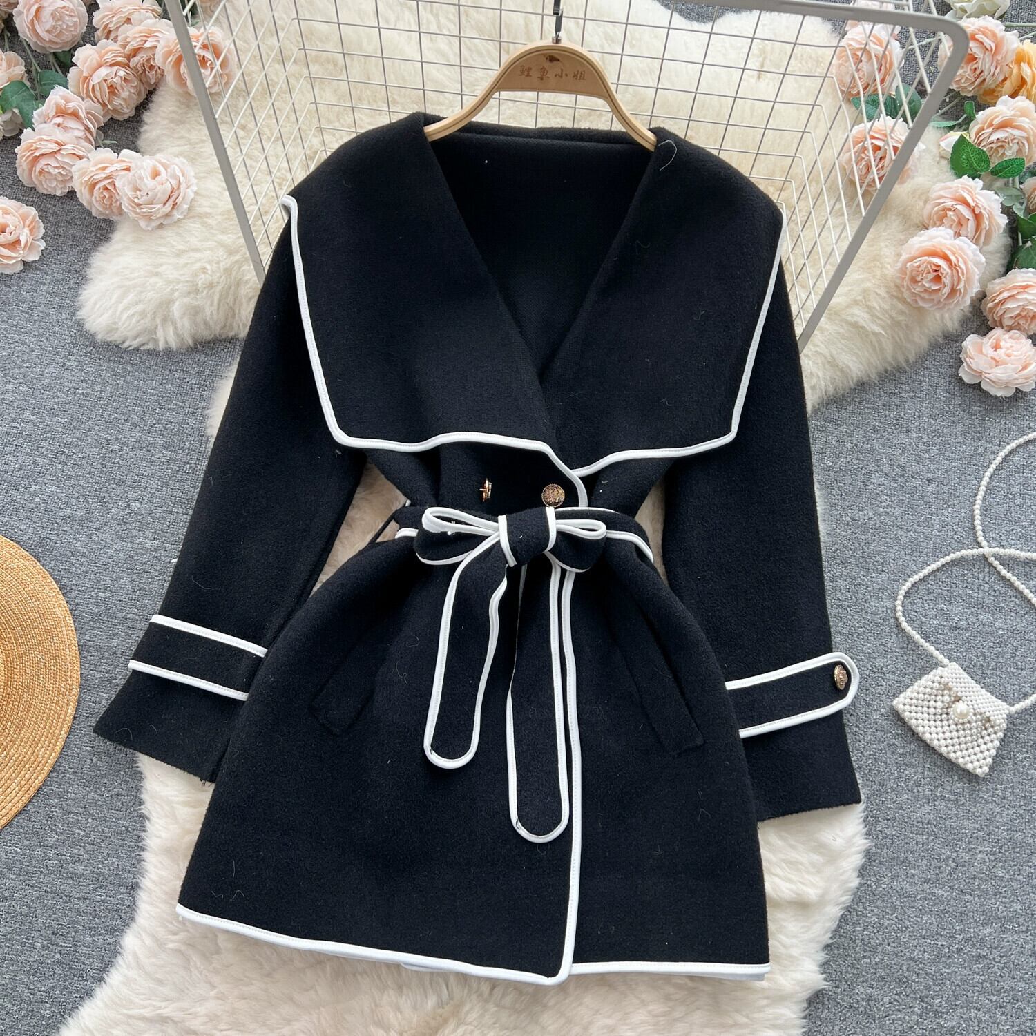 ニッチハイエンドレディスタイルニットジャケット女性の秋と冬の新しい気質ファッショナブルなウエスト痩身ミドル丈コート オータム 秋物 ウィンター 冬物 lyxaj60387016588