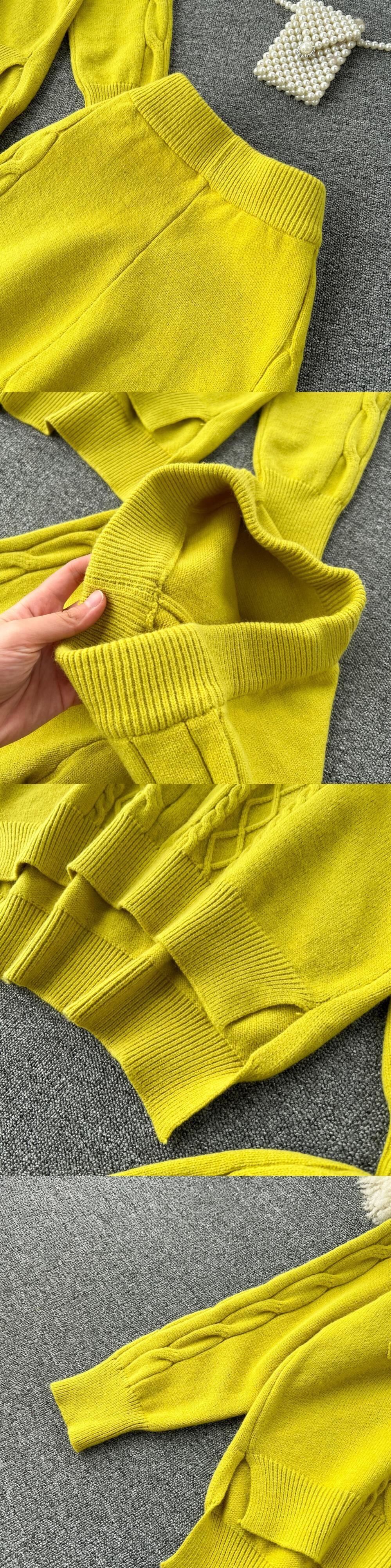 秋と冬の有能なカジュアルスポーツスーツレディース、ゆったりと多用途なツイストニットフード付きセーター、ハイウエストパンツ2点セット オータム 秋物 ウィンター 冬物 lyxaj24077698167