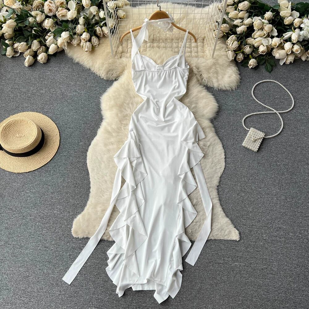 セクシーな純粋な欲望白チューブトップドレス女性ニッチスーパー妖精不規則なフリルスカートハイエンドホリデースカート ホワイト ピュア lyxaj44322662792