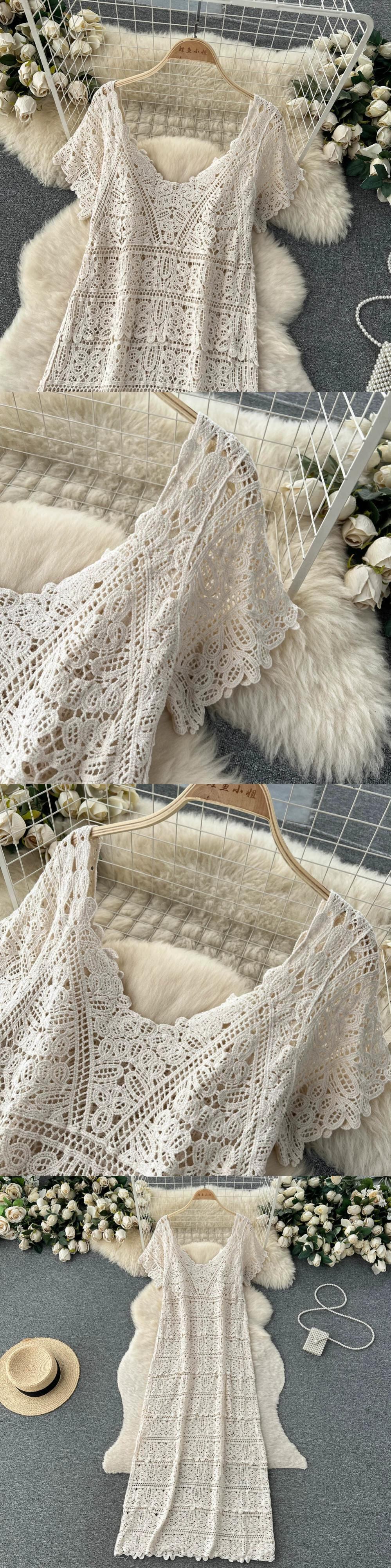 海辺のホリデードレスの女性、サマードレス、レトロな重工業のかぎ針編みの中空ビーチスカート、ゆったりとしたミドル丈の膝上スカート 夏物 lyxaj33889980735