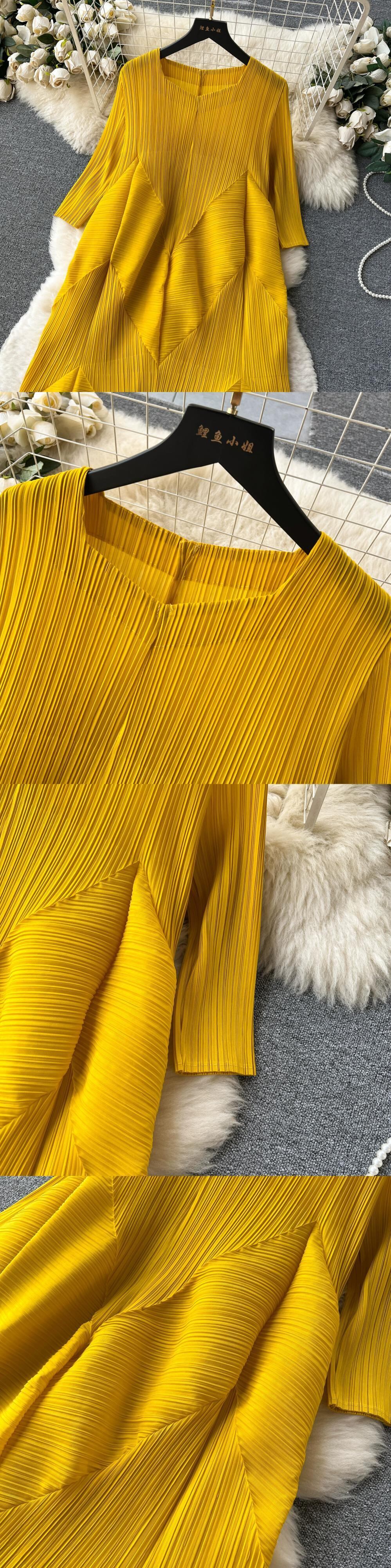 レトロエレガントな女性スタイルプリーツ 5 分袖ドレス女性カジュアル怠惰なスタイルルーズ痩身ロングスカート lyxaj60511289989