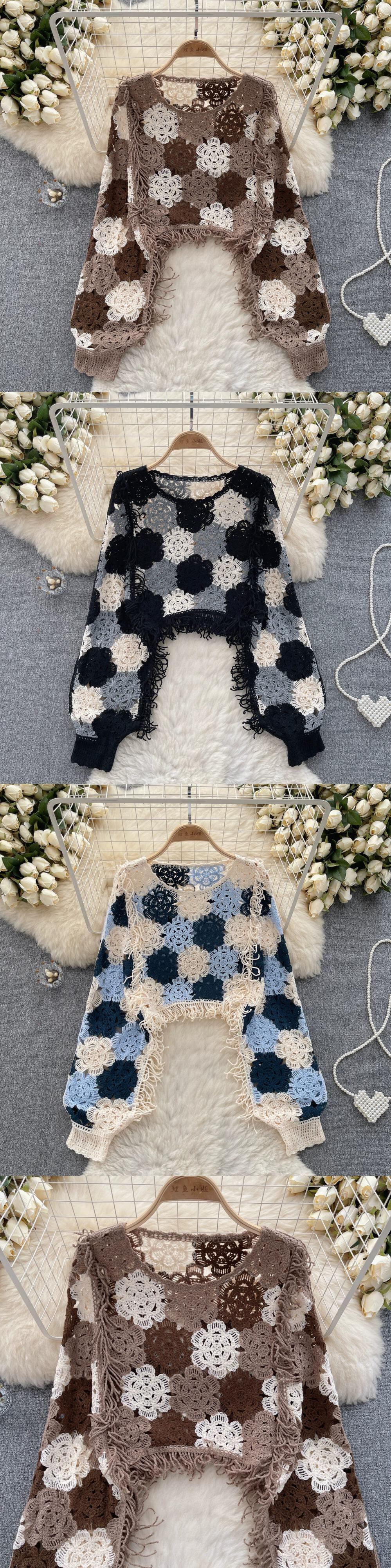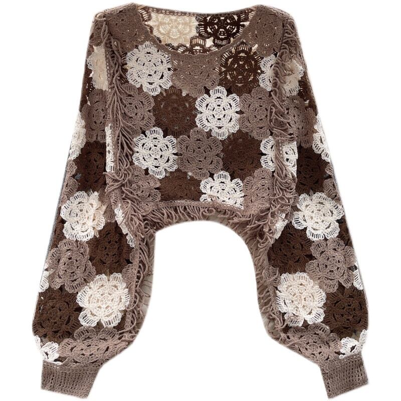 ドーパミン純粋な欲望ホットガールスタイルニット中空テルニッチシックルーズスリム長袖トップ夏 ロング サマー 夏物 ピュア lyxaj7473183637