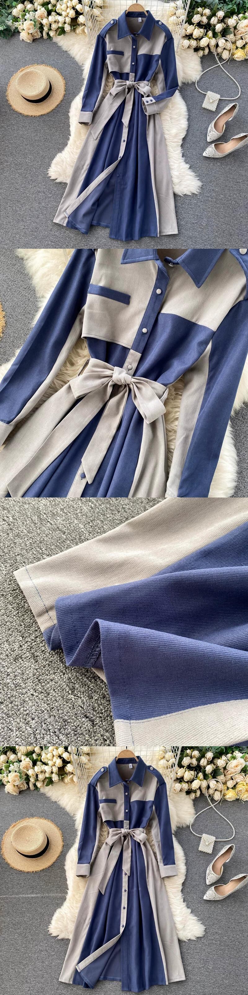 ヨーロッパとアメリカの初冬、ウインドブレーカードレス、ラペル、長袖、スプライシング、コントラストカラー、ルーズレースアップ、ウエストスリミング、ミドル丈スカート ロング ウィンター 冬物 ヨーロピアン lyxaj10077567862