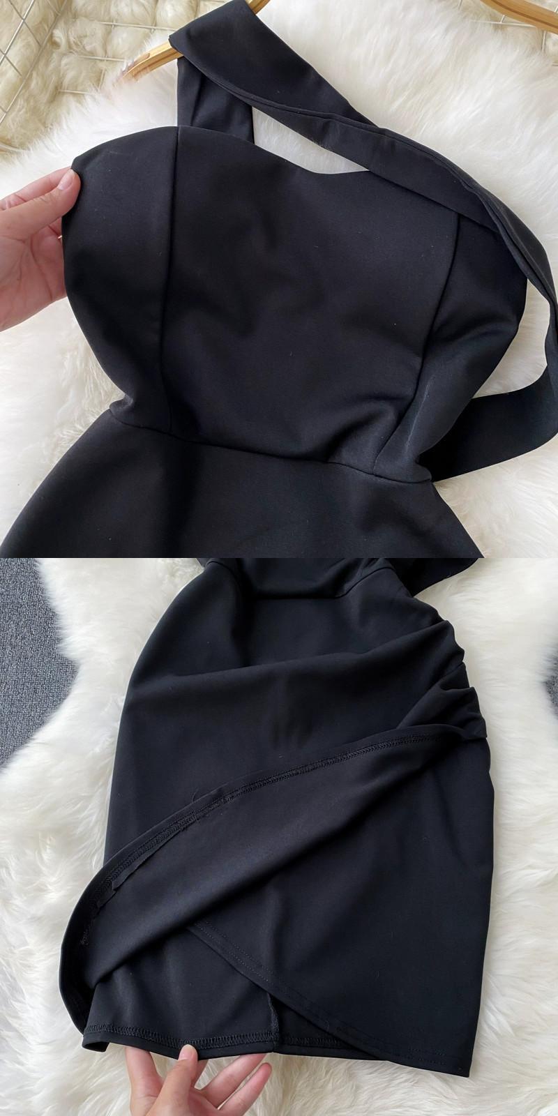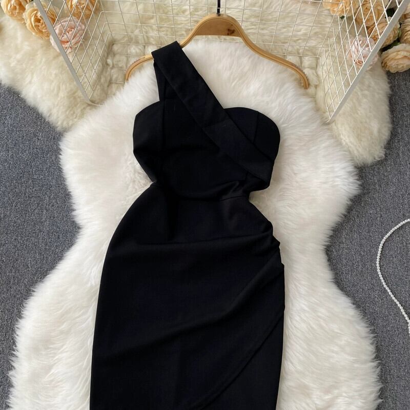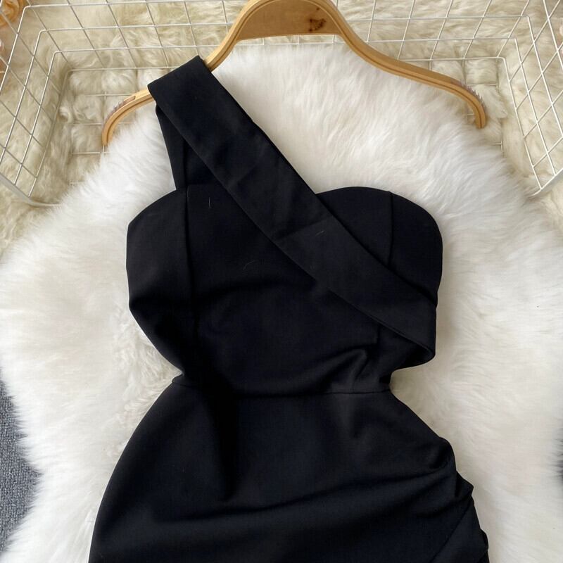 オフショルダーチューブトップドレス女性の夏の新しいセクシーなスリムヒップスカートヘップバーンスタイル純粋な欲望ウエスト小さな黒のスカート ブラック サマー 夏物 ピュア lyxaj30352270642