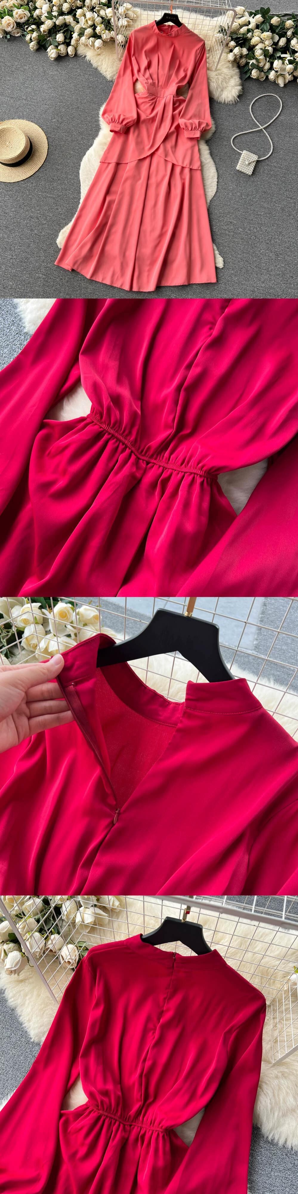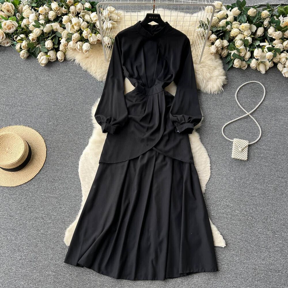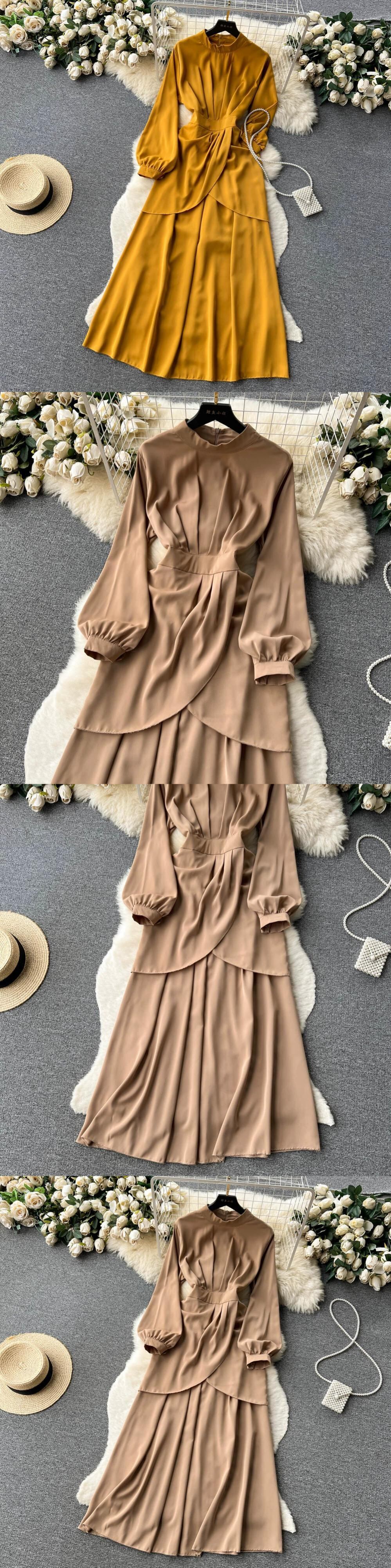 ティーブレイクフレンチ長袖エレガントドレス女性春と秋の新デザインハイウエストスリムでエレガントな女性のロングドレス スプリング 春物 オータム 秋物 lyxaj56826624814