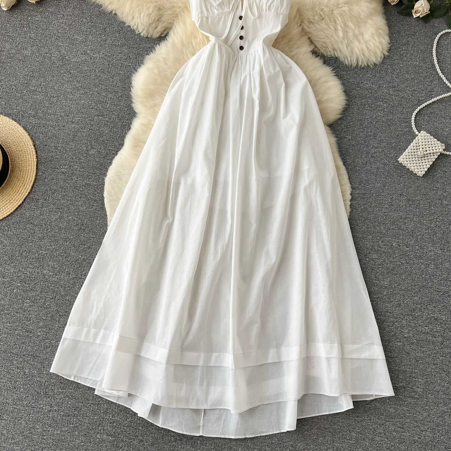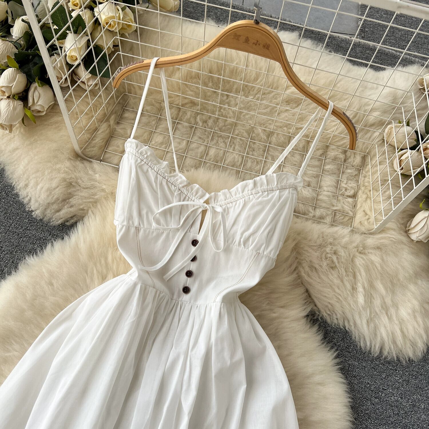 海辺のリゾートスタイルのビーチドレスの女性、新鮮で最もスタイリッシュな白い背中の開いたチューブトップサスペンダードレス、ロングスカート、トレンディな ホワイト lyxaj87594304140