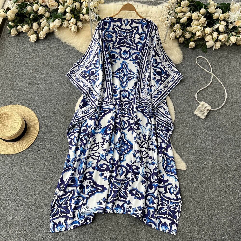 ヨーロッパとアメリカのインスタイル、ファッショナブルな個性、多用途なワンラインカラー、怠惰なスタイル、ルーズレース、不規則な大きな裾のドレス、トレンディな ヨーロピアン lyxaj32487765809