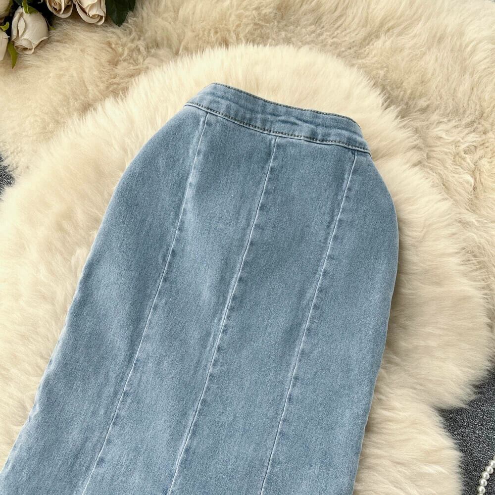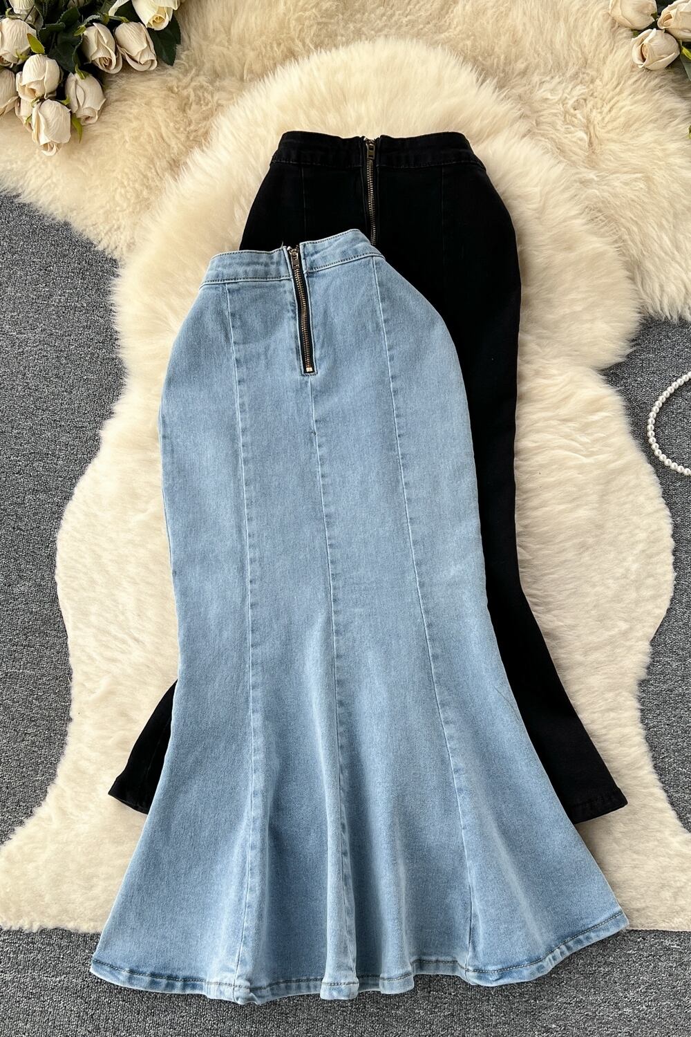 純粋な欲望ホットガールスタイルスカート女性の夏のウエストスリムスリットデニムスカートミッドレングスフリルフィッシュテールスカート サマー 夏物 lyxaj69305335176