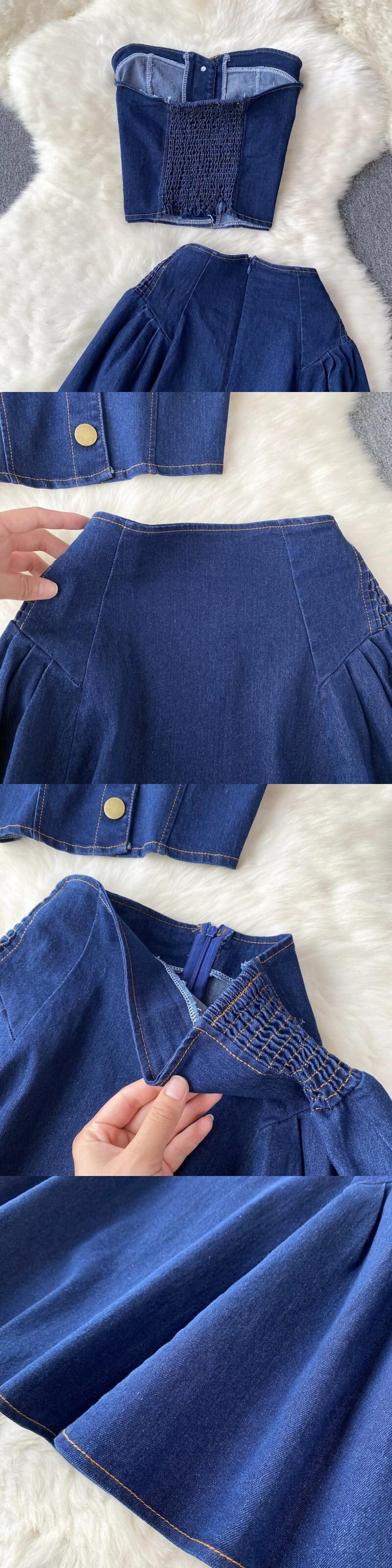 スイートクールホットガールスーツスカート女性の夏ショートデニムチューブブラジャーベストトップツーピースセットウエストAラインスカート 大人ガーリー スウィート キュート カジュアル サマー 夏物 lyxaj67689321083