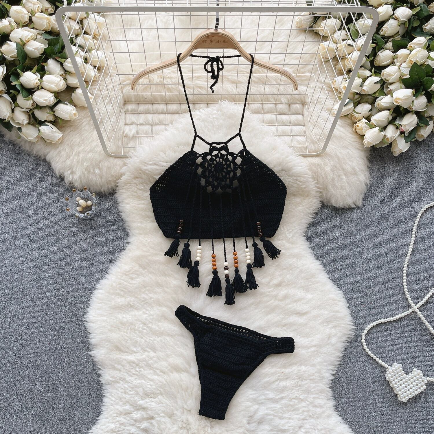 レトロエスニックスタイルニットチューブトップスーツ女性夏電話バックレスストラップデザインホルタートップツーピースセット サマー 夏物 lyxaj65554206641