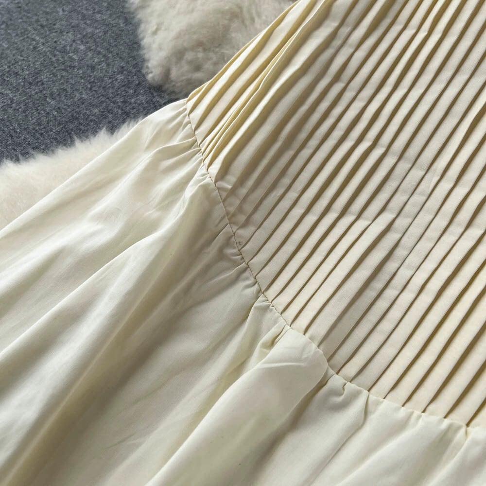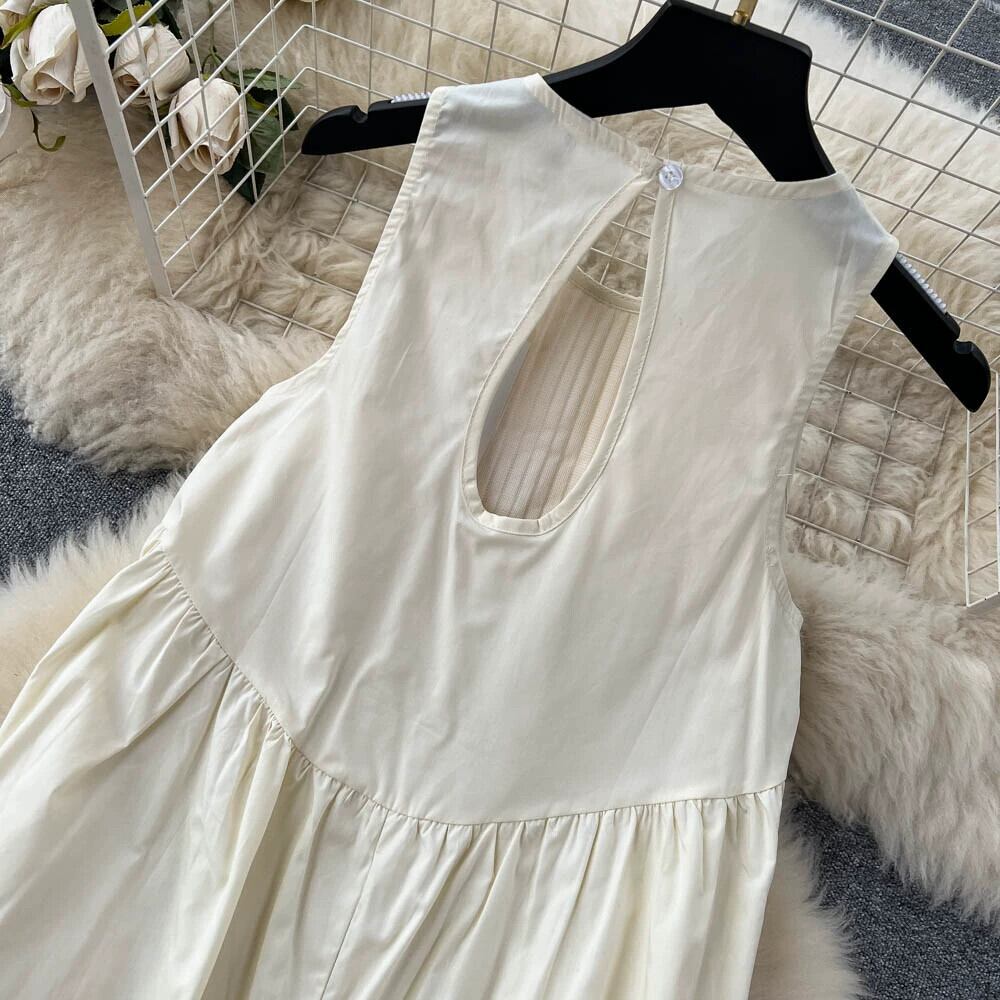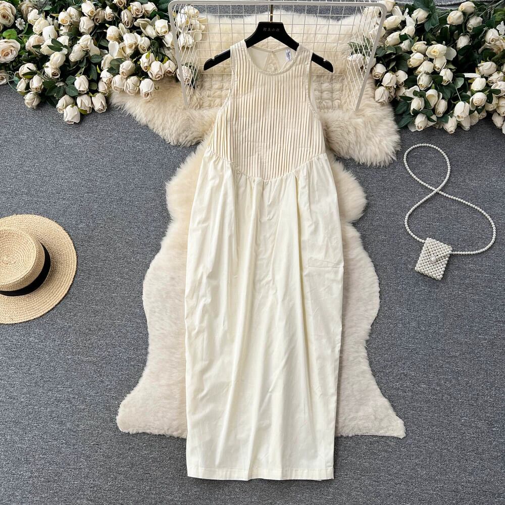 ゆったりとしたデザインとプリーツのつぼみを備えたフランスの高級リゾートビーチスカート、スリムでエレガントなノースリーブベストドレス lyxaj24638834860