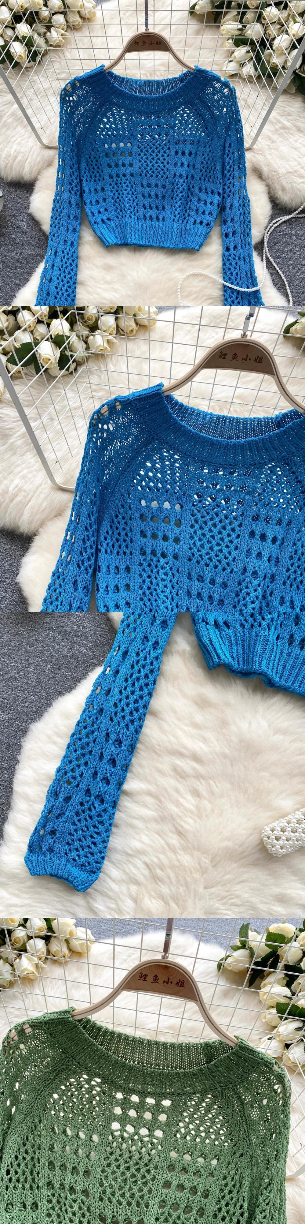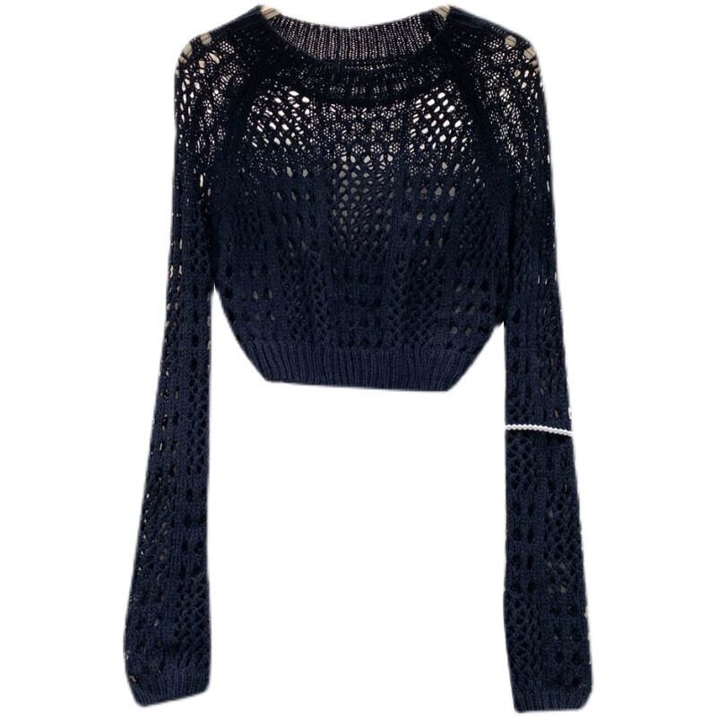 シックなニッチ中空ラウンドネック日焼け止め長袖セーター女性多用途ショートスタイルアウター空調シャツブラウストレンド ロング Oネック lyxaj9486956205