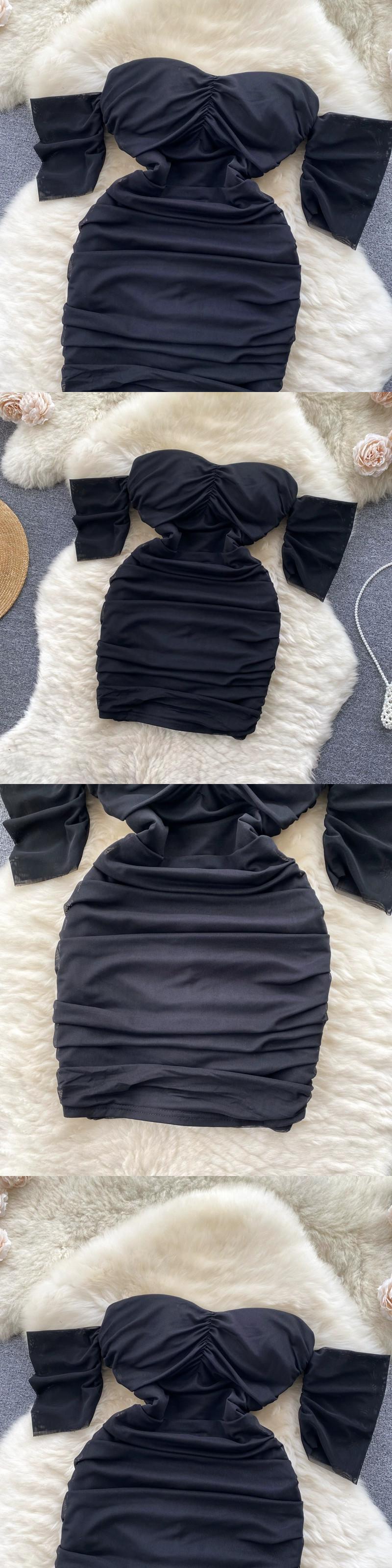 セクシーなワンショルダーチューブトップドレス女性の夏の新しいスタイルプリーツスリムフィットヒップハグナイトクラブスタイルスカート サマー 夏物 lyxaj27999966599