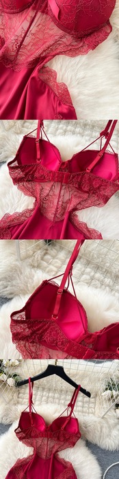 フレンチセクシーな純粋な欲望スタイルシースルーレースステッチサテンサスペンダードレス女性ハイエンドセクシーなネクタイウエスト露出ショートスカート ピュア lyxaj22052197417