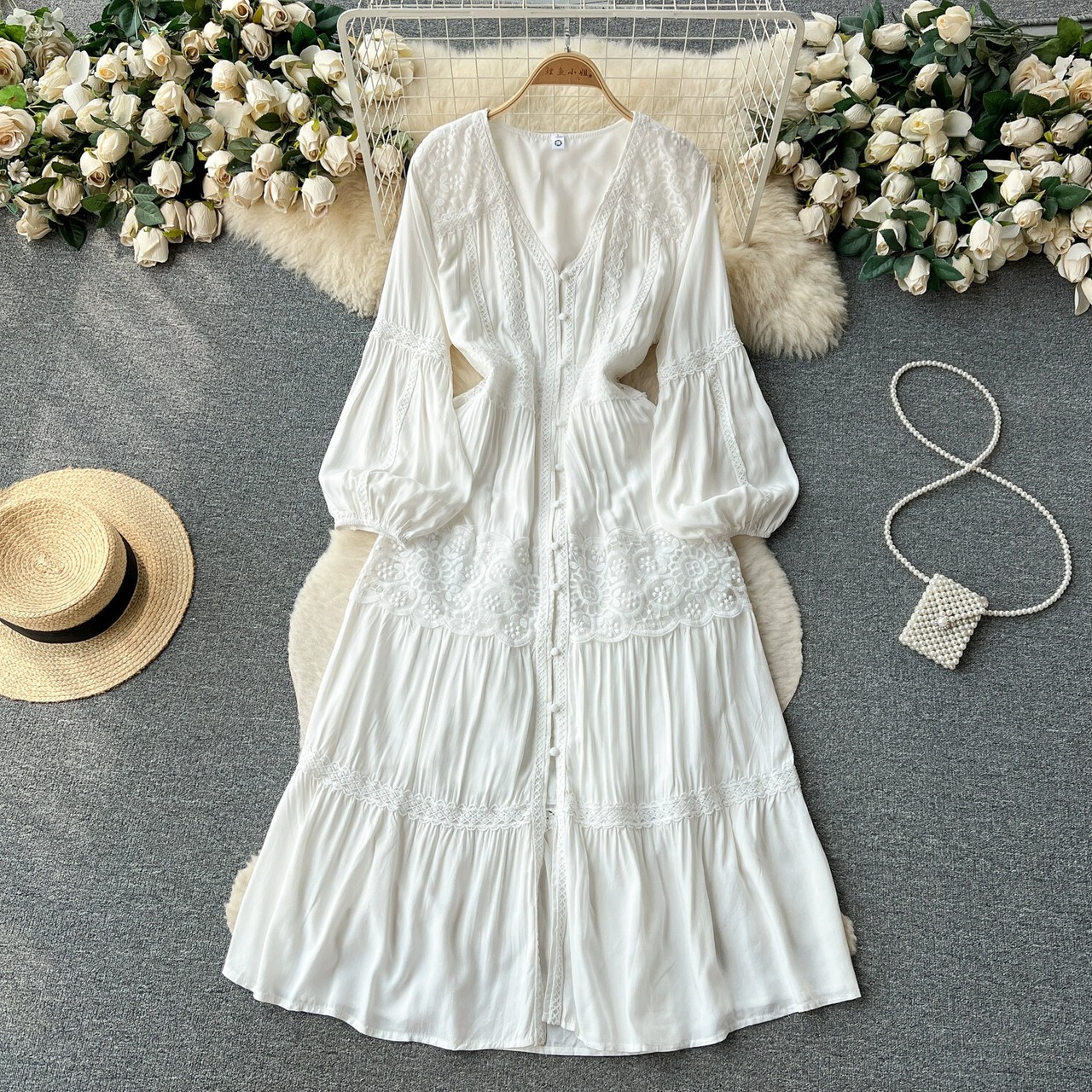 海辺の休暇のスーパーフェアリービーチドレスの女性、ハイエンド、エレガント、レース中空ウエスト、痩身と気質のAラインドレス lyxaj73216116095