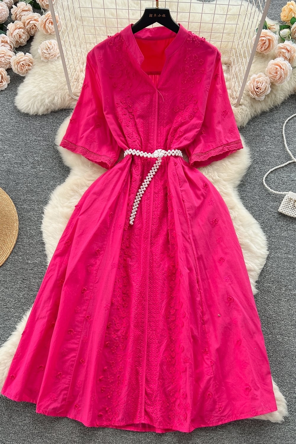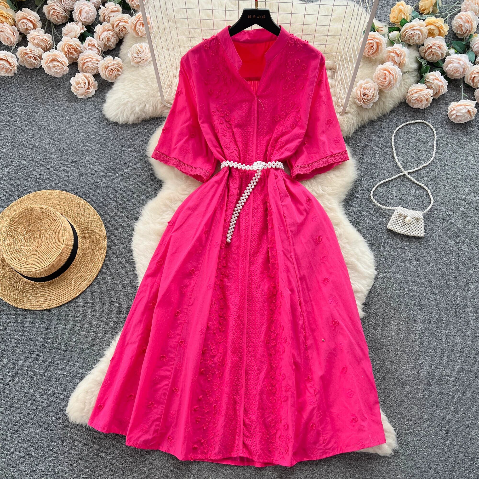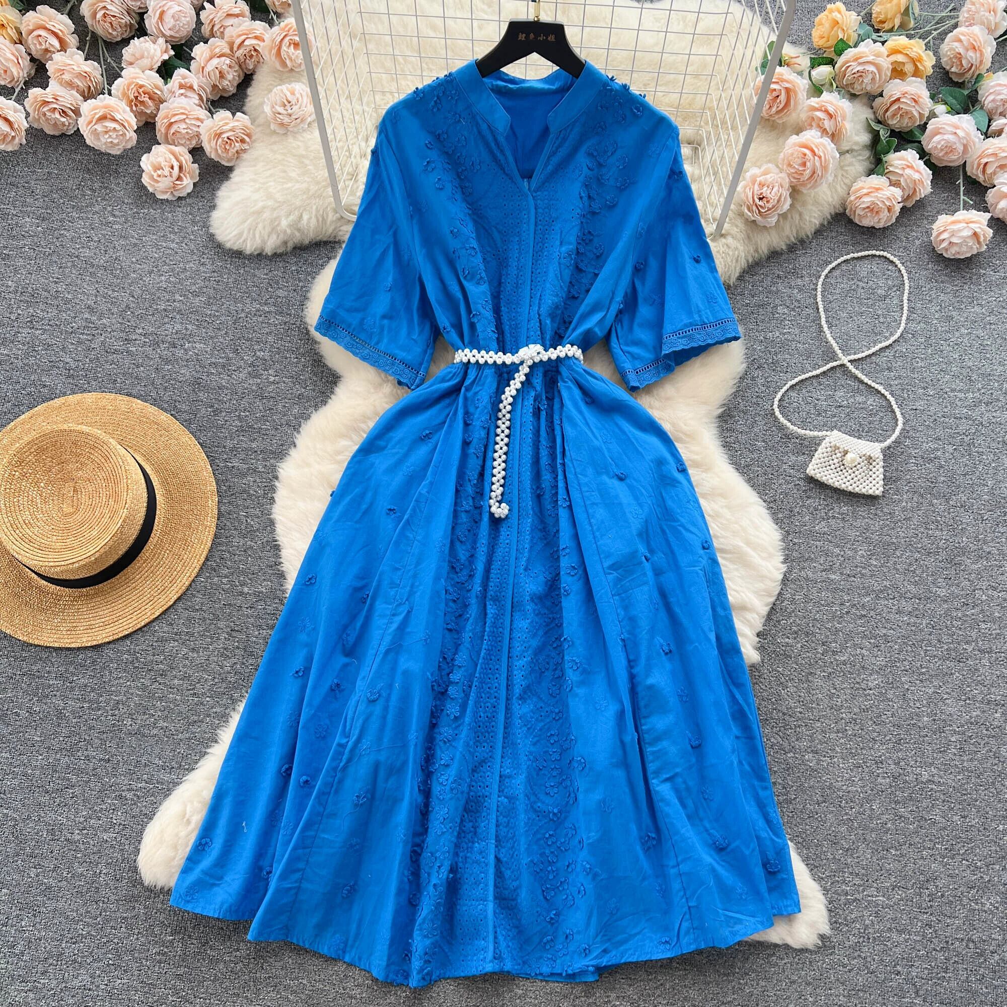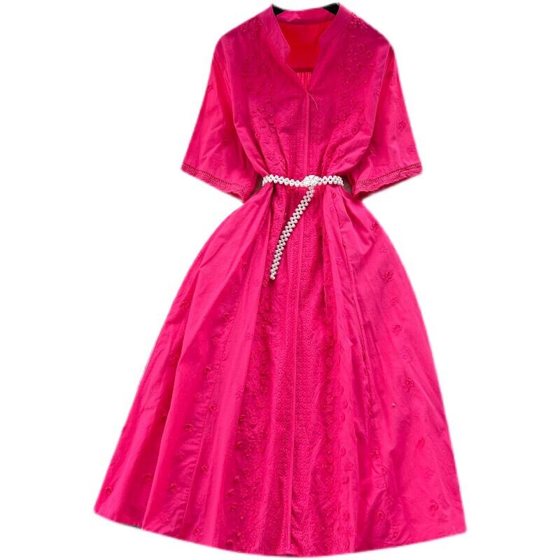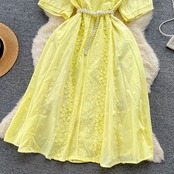 フレンチレトロなハイエンドVネック半袖ドレスレディースかぎ針編み刺繍レースアップウエストとエレガントなホリデースタイルのロングドレス lyxaj4936167005